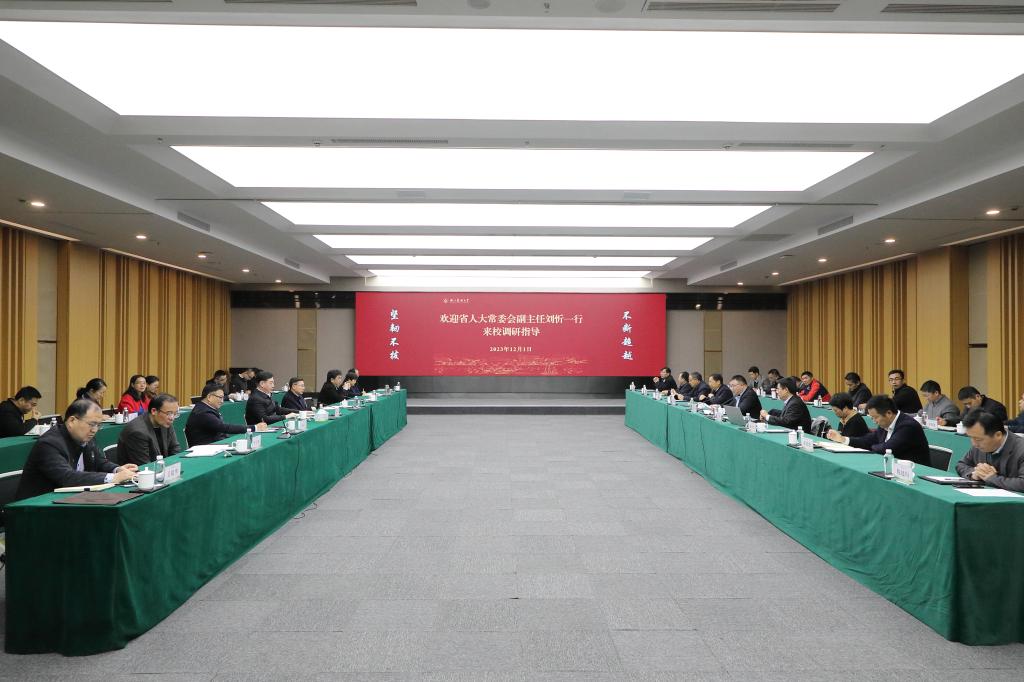 校长沈希从历史沿革、人才培养、学科建设、科学研究等方面汇报了学校的基本情况,以及近年来学校构建“一体双轮”战略格局、做大做强农科学院学科专业、开工建设新农科教育教学中心、持续强化科技创新等助力农业“双强”方面取得的成绩和正在推进的重点工作。他重点介绍了浙江省乡村振兴研究院、beat365官方网站生态文明研究院的建设情况,汇报了学校服务国家和地方立法的相关成果。在分析了当前学校所面临的历史发展机遇的基础上,沈希提出了面临的困难和问题,希望省人大一如既往地关心、支持学校工作,全校上下也将凝心聚力,勇于追梦,担当作为,全面推进学校高质量发展。