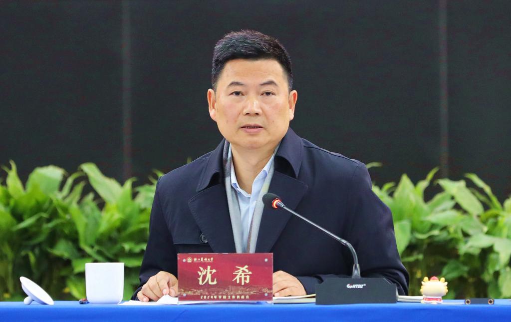沈希指出,当前学校已经站到了一个新的台阶上,国家级人才、学位点、博士后流动站、ESI排名等指标均排在省属高校前列;“一体双轮”“一深广知”“无体艺 不农林”“全校服务全域”“立地顶天”“精益求精”等理念已经形成;基础设施建设不断强化,学校整体品质全面提升,整个学校发展呈现出欣欣向荣、蓬勃发展的态势。沈希认为,新台阶上的竞争更为激烈,“新台阶、新目标、新要求、新对手”,要求我们必须紧跟国家战略步伐,突出组织化科研,以非常规之手段、非常规之举、非常规之策,全力冲击“双一流”。