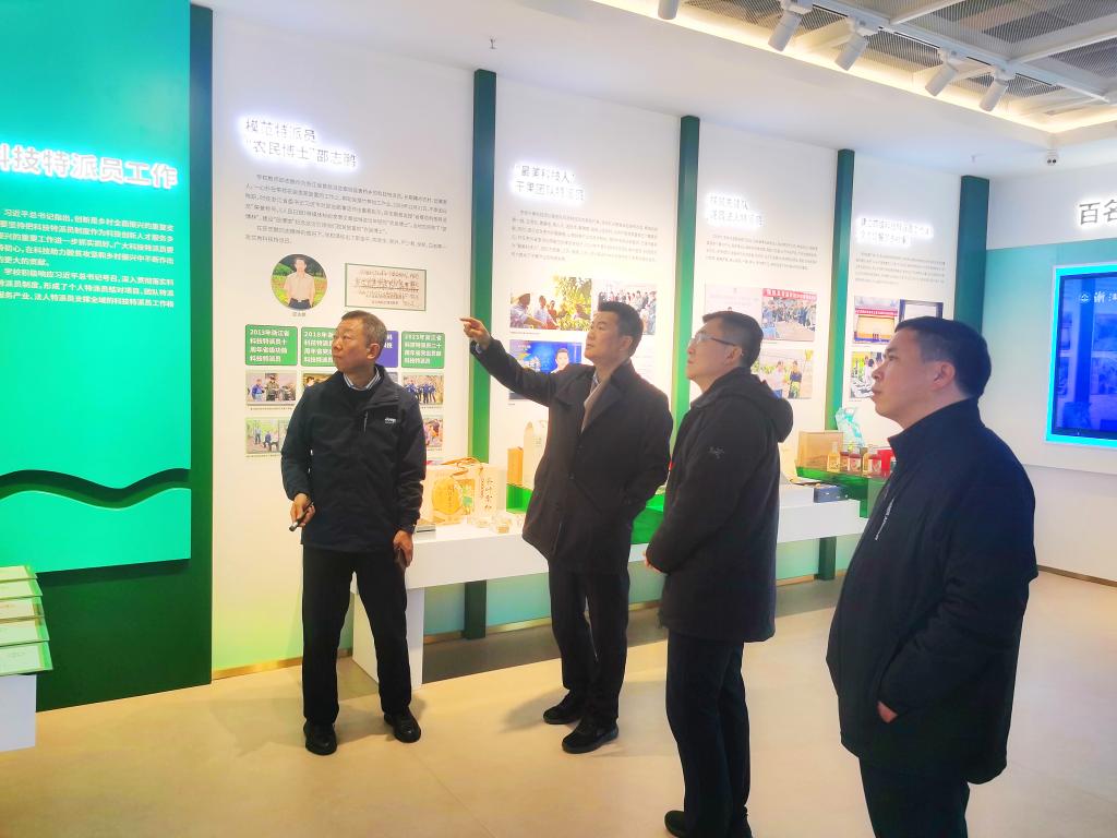 纪智一行还参观了学校乡村振兴纪实馆,听取了吴家胜关于学校服务乡村振兴工作的介绍。