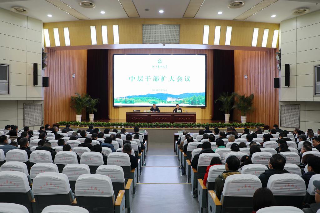 2月26日,是新学期开学第一天。学校在图书馆第一报告厅召开2024年第一次中层干部扩大会议,这也是浙农林大的“新春第一会”。