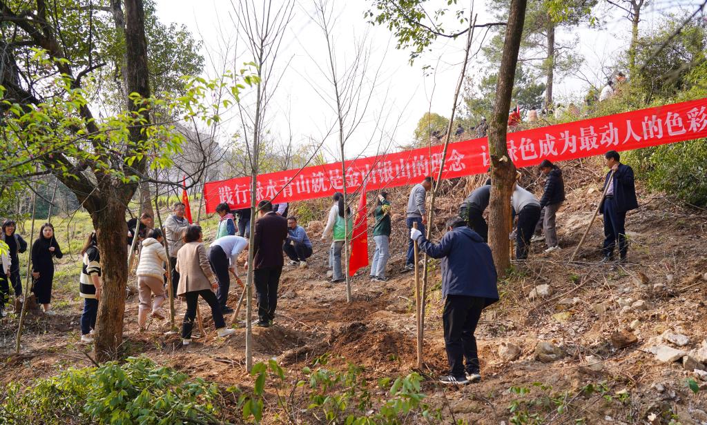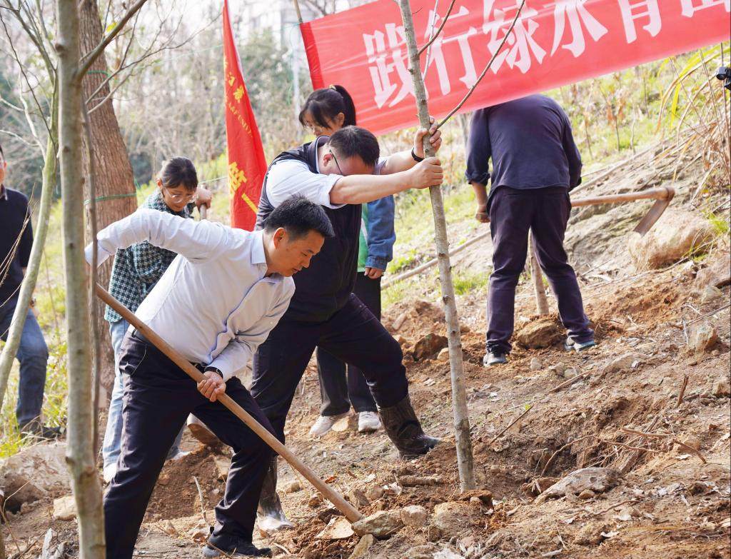 校党政班子成员朱斌、沈希、冯尚申、施美红、沈月琴、胡祖吉、吴家胜、徐爱俊、包松永、倪建均等与师生代表一起,在东湖校区B3宿舍楼东侧携手添种一片新绿。大家满怀热情地挥锹、铲土、栽种……三五人一组,团结协作、干劲十足。不到2小时,雷公鹅耳枥、毛鸡爪槭、野茉莉、杭州榆、伯乐木等10余种200多棵树苗迎风挺立,为校园增添了一抹春意、一道生机盎然的风景线。