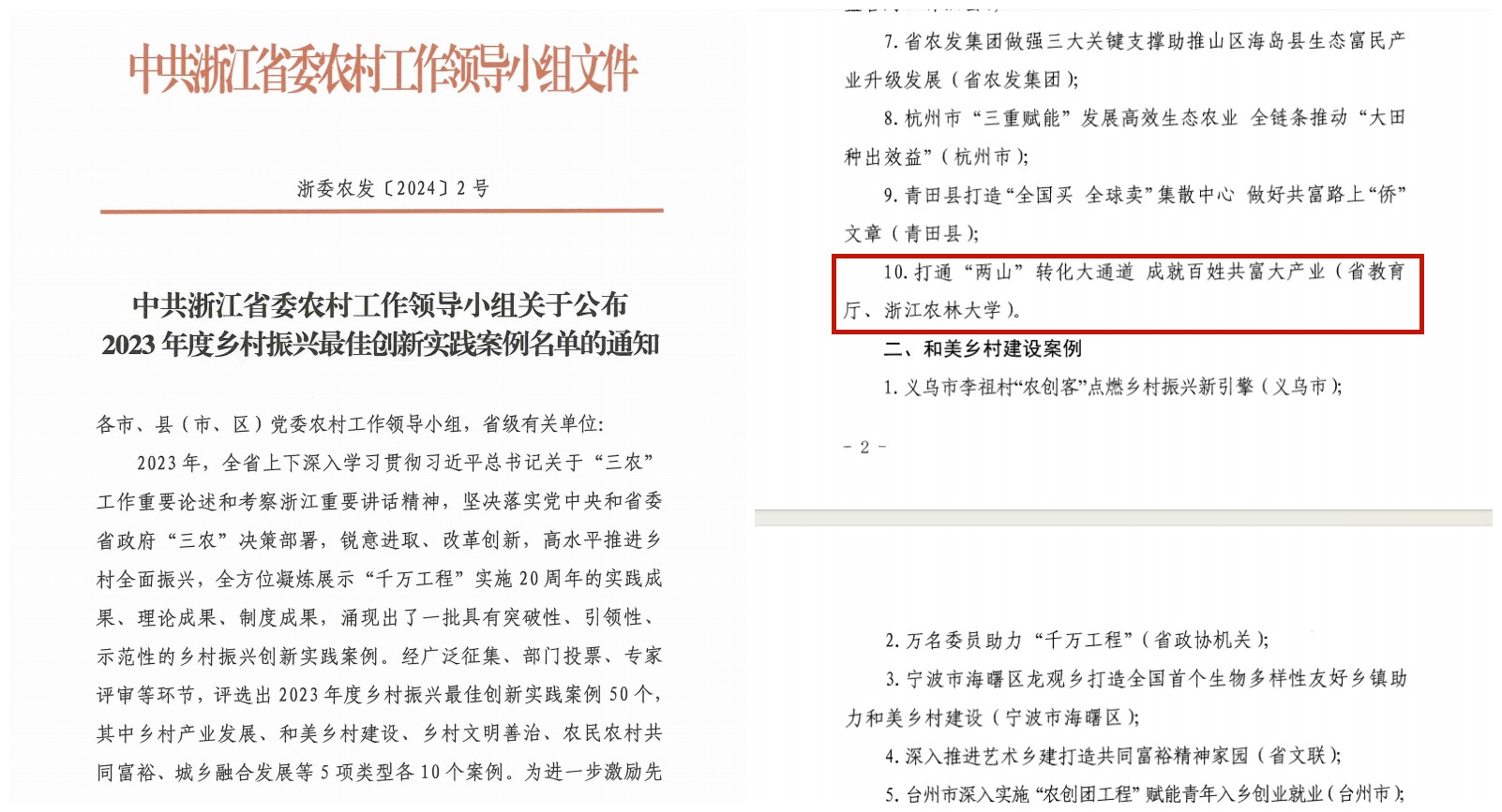近日,浙江省委农村工作领导小组公布了2023年度全省乡村振兴最佳创新实践案例名单。beat365官网服务乡村振兴的成果《打通“两山”转化通道 成就百姓共富大产业》入选乡村产业发展案例,这也是全省高校今年唯一入选的案例。