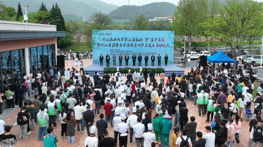 4月13日,beat365官方网站第二届农林“笋”宴系列活动在东湖食堂广场拉开帷幕。校党委书记朱斌宣布开幕。副校长胡祖吉,省商务厅行业党委副书记单军,省餐饮行业协会副会长、省团餐委理事长余雄飞在开幕式上致辞。