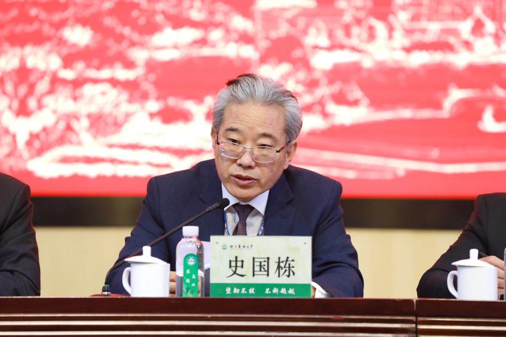 史国栋代表专家组向学校反馈审核评估总体考察意见。专家组充分肯定了beat365官网推进本科教育教学改革与建设的多项举措和成效,认为学校围绕“能够担当民族复兴大任的具有生态文明意识、创新创业能力的高素质人才和区域现代农林业未来领导者”的人才培养目标,全面落实立德树人根本任务,本科教育教学成效显著。一是以“两山”理论为引领,新农科建设成效显著。优化调整专业结构,构建智慧农业等六大全产业链专业群;聚焦新农科“育人共同体”、教育联盟、实践教学高地建设和拔尖创新型人才培养,着力培养新型农林人才;创建“吴越劳动教育书院”等载体,构建以耕读教育为特色的劳动教育体系。二是践行“一懂两爱、一专多能”理念,定向农科生培养特色凸显。打造多元共育、融合共赢的“政校企”育人共同体,通过“四共”产教融合育人新机制,培养一流应用型人才。三是构建“一体两翼”创新创业教育体系,双创培养质量显著提升。全面实施“学科竞赛入课堂”,建立“一二三”立体型双创实训体系,促进专业教育和双创教育的深度融合。四是搭建产学研用资源共享平台,助力学生创新实践能力全面提升。打造区域共建共享新农科实践高地,获批3个省级重点支持现代产业学院,打造具有浙江辨识度的教育赋能乡村振兴示范样板。五是持续深化“生态育人 育生态人”办学理念,浙农林大模式示范效应凸显。专家组认为,对照学校建设区域特色鲜明的高水平生态性研究型大学建设目标,需要聚焦以下问题加大改进提升力度。一是进一步强化落实高质量人才培养的保障力度;二是将学校优势特色充分融入人才培养全过程;三是强化文理工农之间专业结构的优化布局和专业内涵建设;四是完善青年教师培养体系;五是进一步强化教学资源建设;六是进一步健全质量保障体系和质量文化建设。