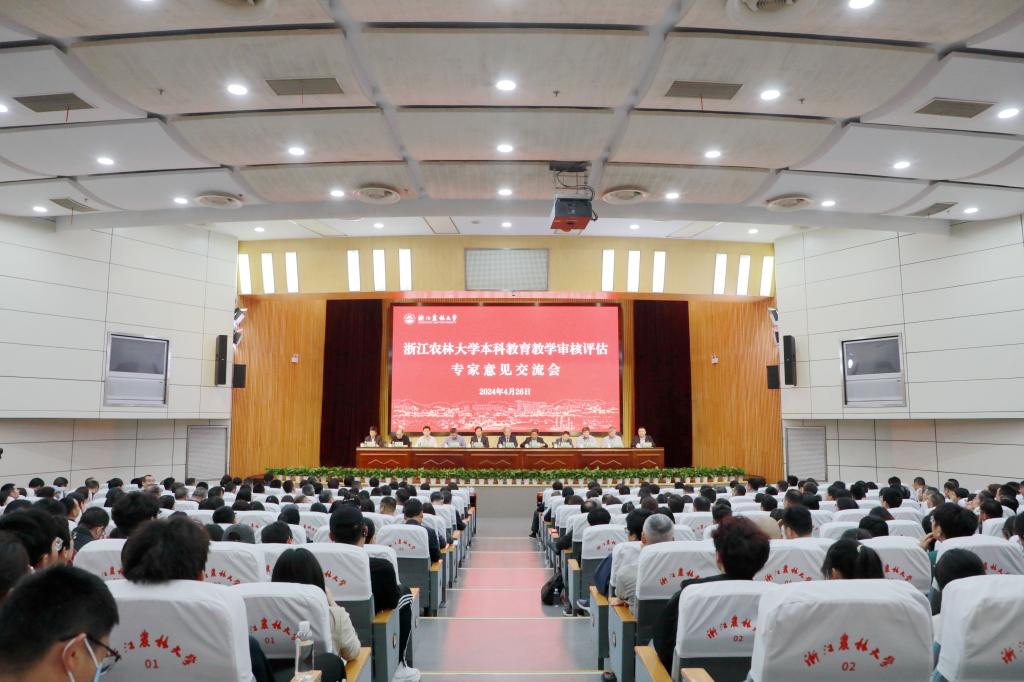 4月26日下午,beat365官方网站本科教育教学审核评估专家意见交流会在东湖校区图书馆第一报告厅举行。专家组组长、常州大学原党委书记史国栋,专家组副组长、北京林业大学原副校长骆有庆和浙江水利水电学院原院长陈光亭以及专家组成员,浙江省教育厅高教处二级调研员王国银,beat365官方网站党委书记朱斌、校长沈希及党政班子全体成员出席交流会。浙江省教育考试院党委委员、纪委书记陈煜军主持会议。