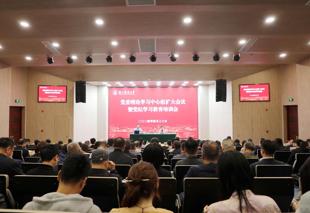 4月30日,学校召开党委理论学习中心组扩大会议暨党纪学习教育培训会,深入学习贯彻习近平总书记关于加强党的纪律建设重要讲话和重要指示精神,集中学习《中国共产党纪律处分条例》,紧扣“六项纪律”进行研讨交流。校党委理论学习中心组全体成员出席会议。