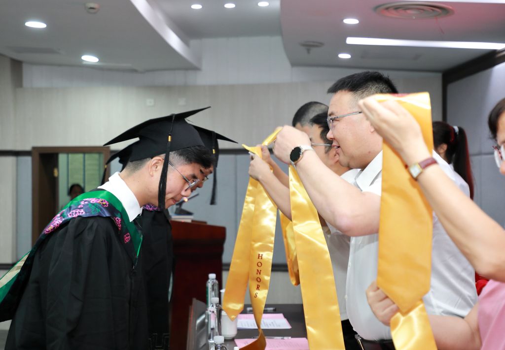 校党委书记朱斌出席授予仪式并讲话。副校长沈月琴主持。学工部、研工部、教务处、国际处等部门负责人,各相关学院负责人,毕业班荣誉班主任和荣誉导师代表,毕业生家长和在校生代表,集贤学院全体教职工,73名2024届求真实验班毕业生参加仪式。