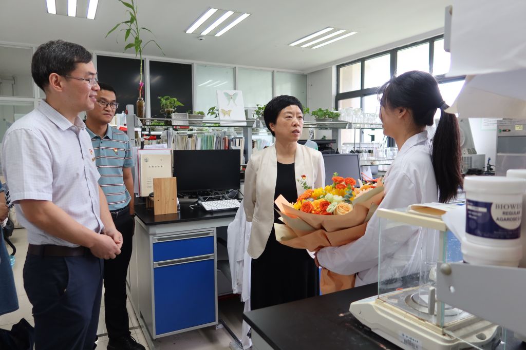 朱斌一行慰问了全国优秀共产党员黄坚钦教授和国家级人才沈晓萍副教授,对他们潜心钻研在科技攻坚一线,推动成果转化,助推一流学科建设给予充分肯定,并鼓励广大教职员工在本职岗位上创先争优,再创佳绩。