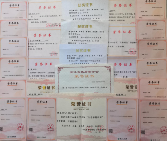 本科期间,C4-317的四位同学都成绩前茅、硕果不断,累计取得各级各类奖项40余项,其中获得国家级、省级奖学金及优秀学生奖学金及荣誉称号20余项,创新创业类奖项10余项。除此之外,他们还发表了多篇高水平论文,其中,胡鑫以共同第一作者发表SCI一区高水平论文一篇,他维帅以第二作者分别发表SCI一区、SCI二区论文各一篇。宿舍四人都在各自擅长的领域闪闪发光,屡创佳绩。