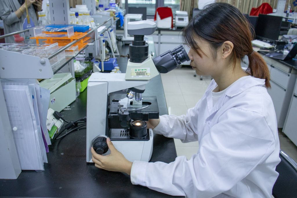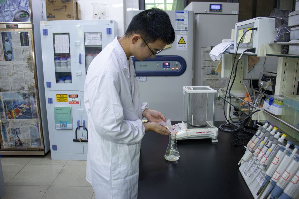学7二楼的实验室里,林学223班的江菲正在进行扩藻和接藻。对她而言,暑假是个难得的实验机会,因为一开始培养的藻类总是死掉,一直培养到学期末才终于有存活下来的,正好利用暑假这个时间继续推进研究。超净台、离心机、显微镜,成为了她这个暑假里打交道最多的“朋友”。