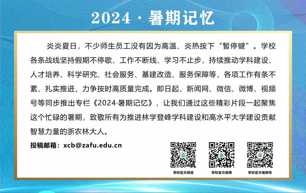 在这个超高温的暑假里,浙农林大后勤人始终坚守岗位,抓紧假期改造的黄金期,推进屋顶清淤、做好绿化养护、进行寝室维修改造……校园环境焕然一新,让浙农林大以更美丽的面貌迎接新学期的到来。
