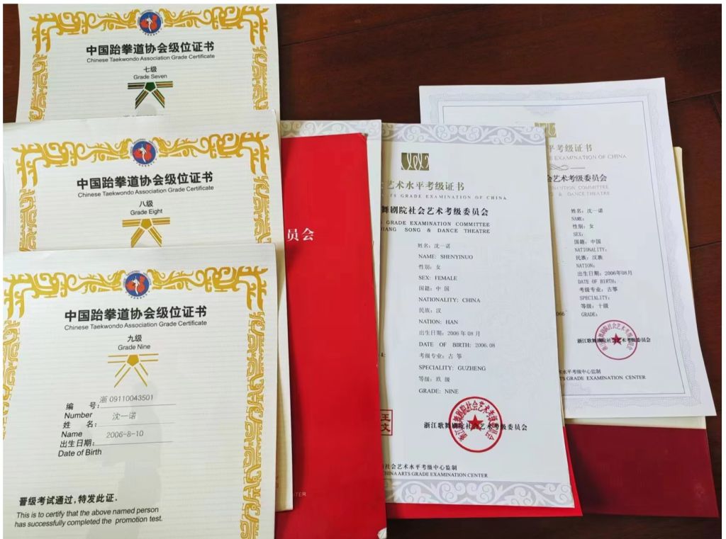 学习生活上,沈一诺一直秉持着“该学的时候学,该玩的时候玩”的理念。遇到难以攻克的学习内容,她会用思维导图的方法来理解其内在的逻辑,努力啃下“硬骨头”,尽力补齐自己的短板,“不会就是在给懒惰找借口,其实练得多了,思考得多了,思路就清晰了,题目就慢慢会做了”。在作业的安排上,沈一诺也有自己的窍门,“做对自己最有益的和事半功倍的,做完数学脑子累了,就练字缓缓”,通过这样的学习方法,沈一诺逐渐掌握了多门学科的核心知识,取得了学考10A的优秀成绩。