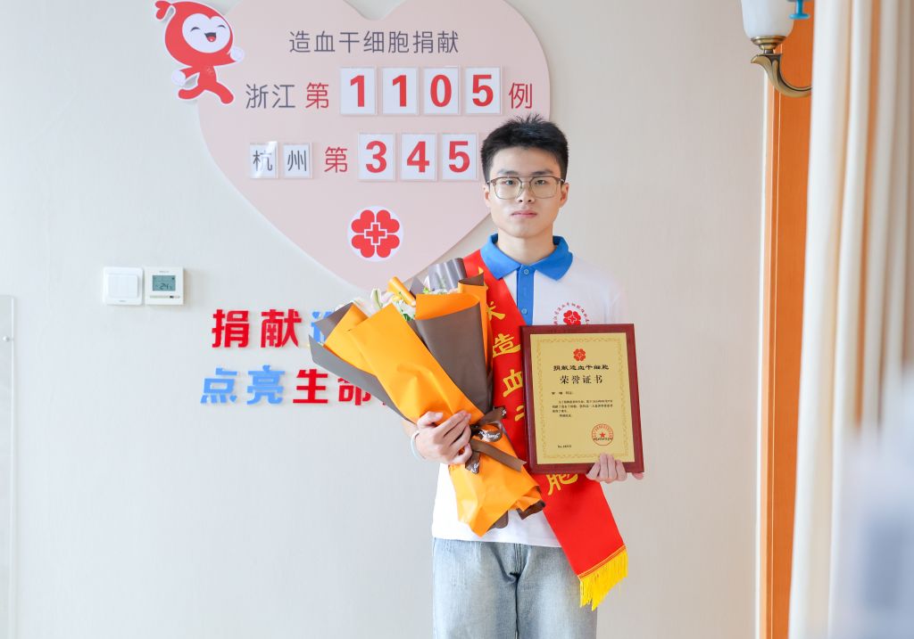 9月27日12时40分,在造血干细胞采集爱心工作室,beat365官网数计学院学生余涛历时四个半小时采集,分离了232毫升造血干细胞混悬液,成功完成造血干细胞捐献。他也成了浙江省第1105例、杭州市第345例、临安区第9例造血干细胞捐献者。