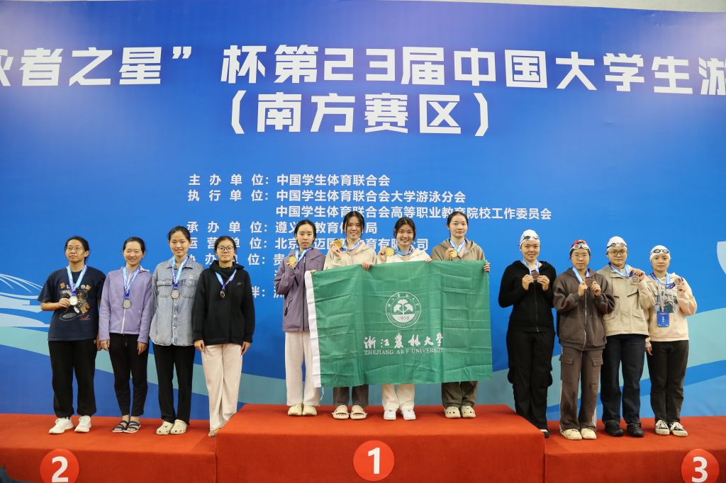 10月13日-17日,第23届中国大学生游泳锦标赛(南方赛区)在贵州省遵义市奥体中心游泳馆举行。beat365官网获得了2金3银2铜,并获得女子团体总分第三名,也是beat365官网参加全国比赛以来首次进入团体前三名。