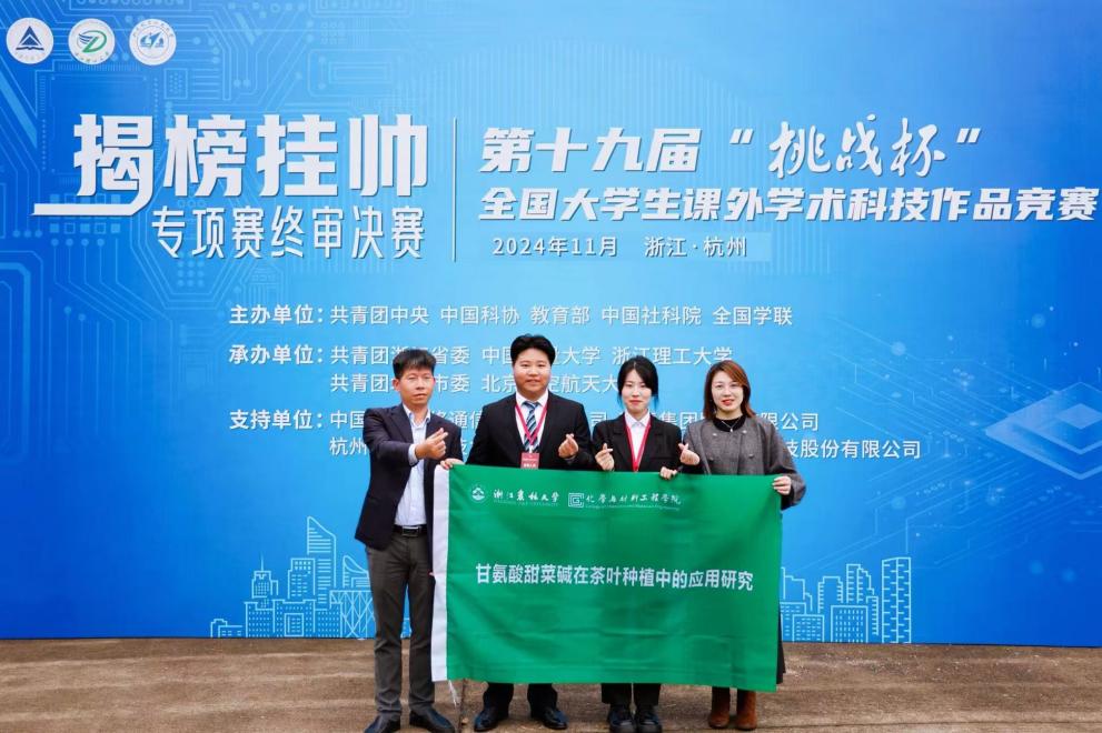 11月17日,第十九届“挑战杯”全国大学生课外学术科技作品竞赛2024年度“揭榜挂帅”专项赛在中国计量大学、浙江理工大学落下帷幕。beat365官网共有10个项目入围终审决赛,最终获得赛事擂主1项(特等奖中得分第一)、特等奖4项,总分全省高校第三,获奖数量、获奖质量获得双突破!