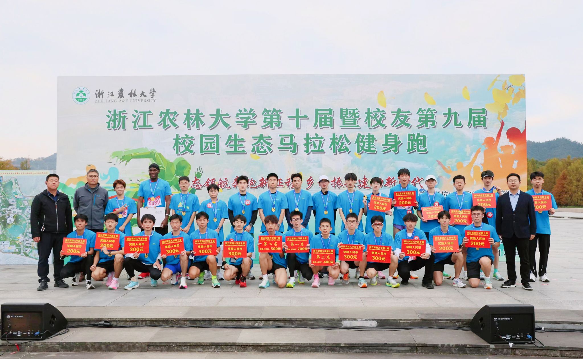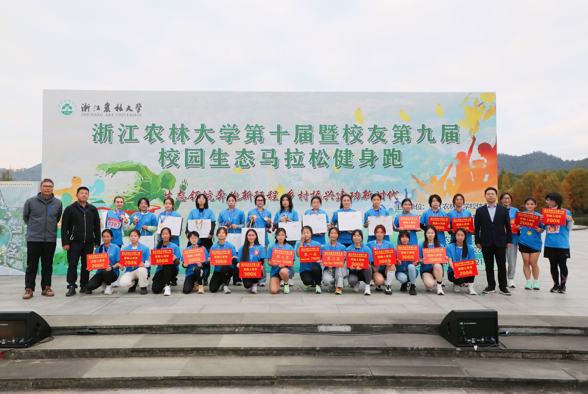 本次马拉松全程近7公里,历经1个多小时,场面宏大壮观,充分展现了浙农林大人“坚韧不拔、不断超越”的精神风貌。男女学生组获得前三十名的选手分别在五舟广场参加了颁奖仪式。