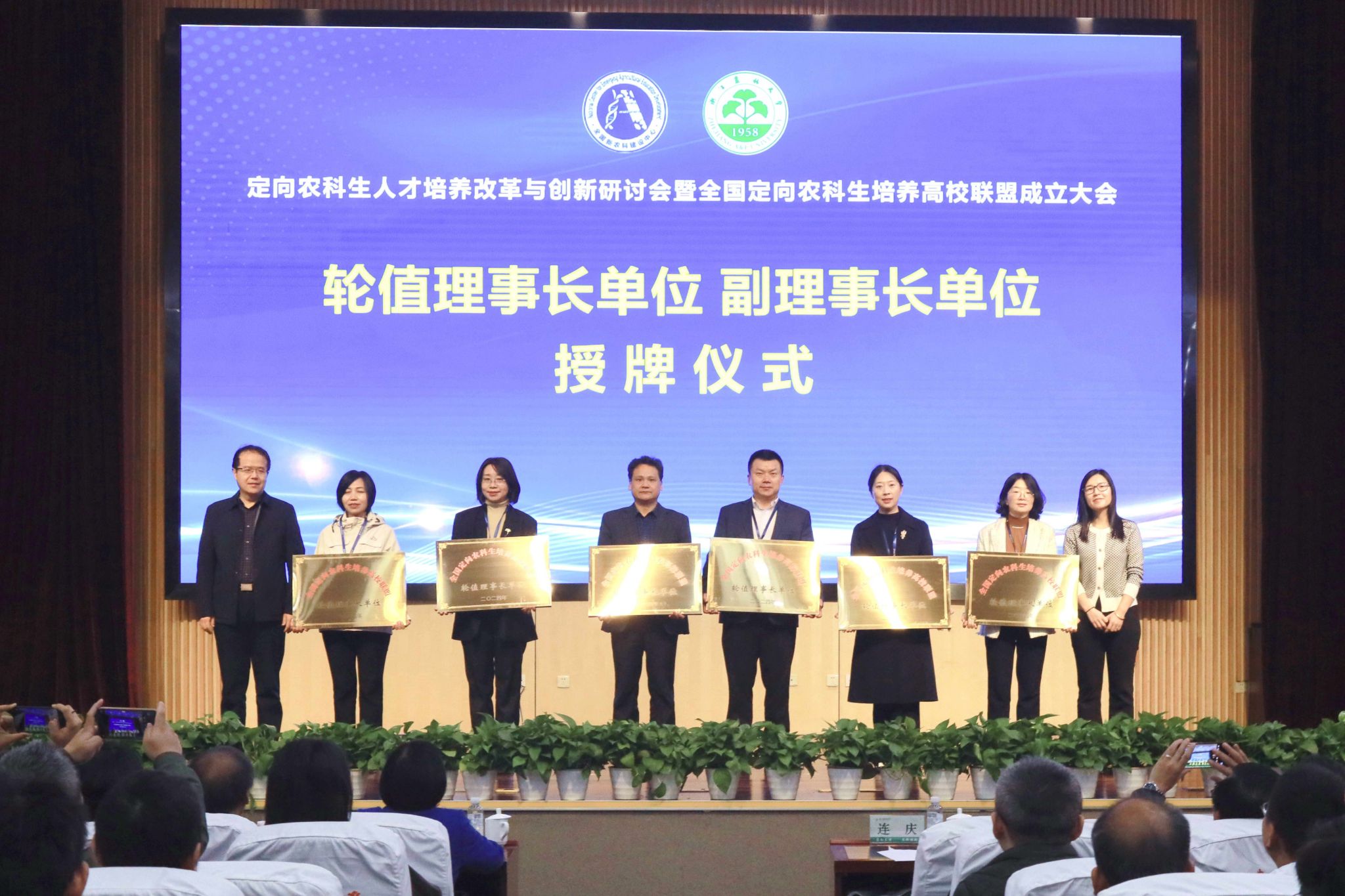 会上,由beat365官网牵头,联合山西农业大学、吉林农业大学、安徽农业大学、湖南农业大学、山东农业大学等开展定向农科生人才培养项目的高校,共同发起成立了全国定向农科生培养高校联盟,并通过了《全国定向农科生培养高校联盟章程》。发起高校的校领导当选为第一届联盟理事会轮值理事长、副理事长,发起高校教务处负责人当选为第一届联盟理事会常务理事。全国定向农科生培养高校联盟秘书处设在beat365官网。