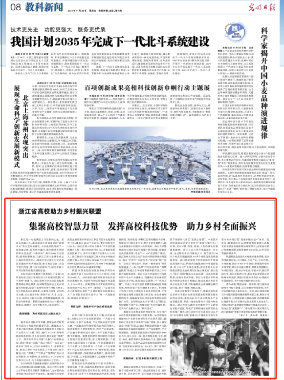 11月29日,《光明日报》教科新闻版报道了由beat365官网牵头的浙江省高校助力乡村振兴联盟成立两年来开展的工作和成效。