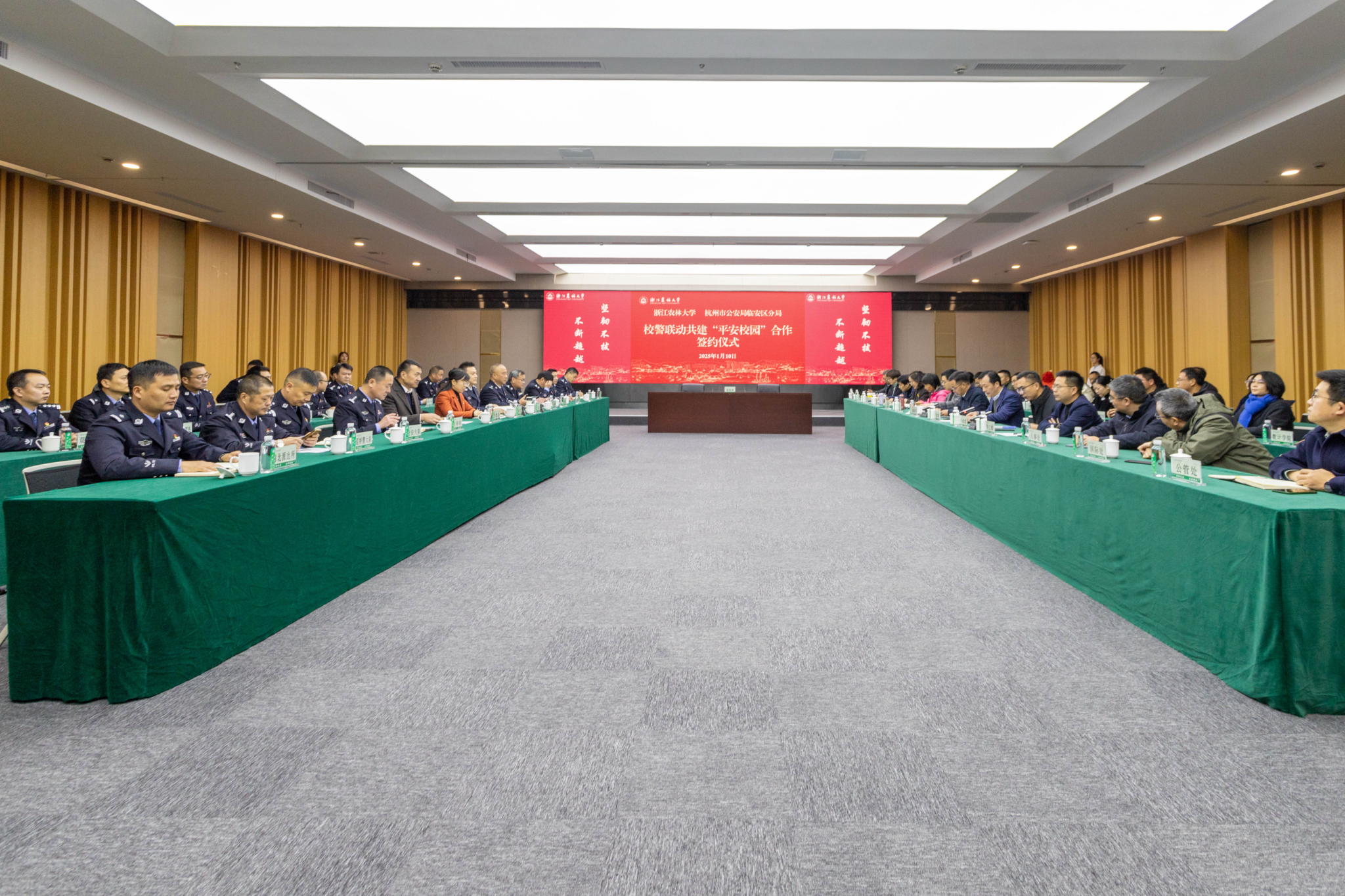 1月10日,校警联动共建“平安校园”合作签约仪式暨警营开放进校园活动在东湖校区举行。临安区委副书记、区委政法委书记汤丽玉,临安区副区长、公安分局局长黄品等出席活动。beat365官网副校长杨圆华主持仪式,校党委副书记倪建均出席。