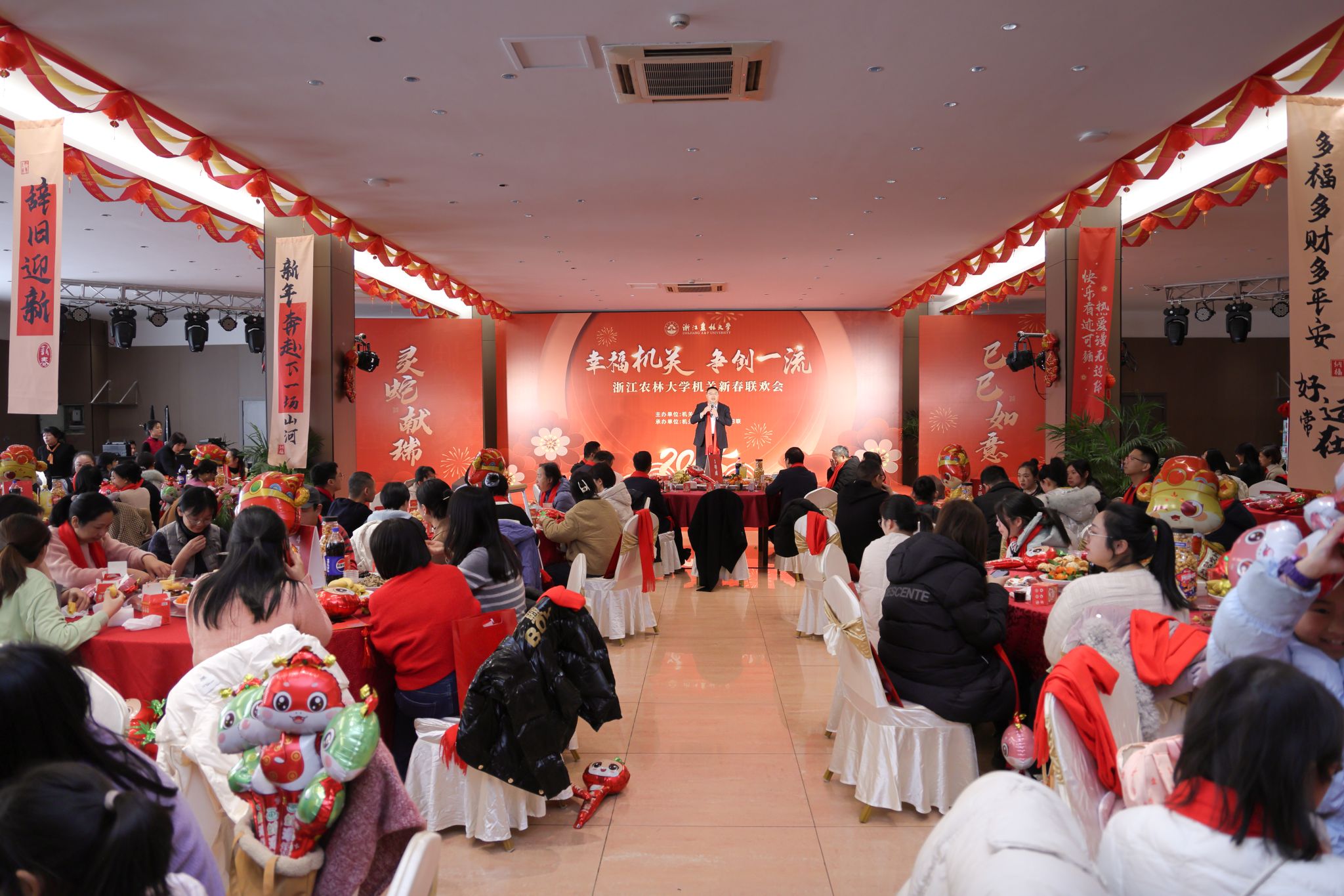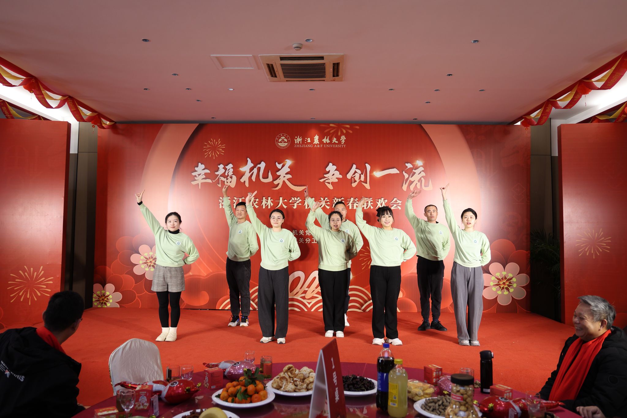 机关老师们演出的节目精彩纷呈,从多方面展现了浙农林大机关人的精神风貌。《上春山》等歌舞表演句句暖心,声声动情;创意舞蹈《欢聚一堂》趣味十足,别出心裁;“因为我们是一家人,相亲相爱的一家人”熟悉的音符一响起,台下观众情不自禁和台上演员一起合唱,把联欢会推向高潮。岁月更迭,初心依旧;新岁序开,共赴新程。大家表示,此次联欢不仅是对过去一年辛勤工作的总结,更是对未来一年美好憧憬的展望。大家在新的征程中必将继续努力,再创佳绩。