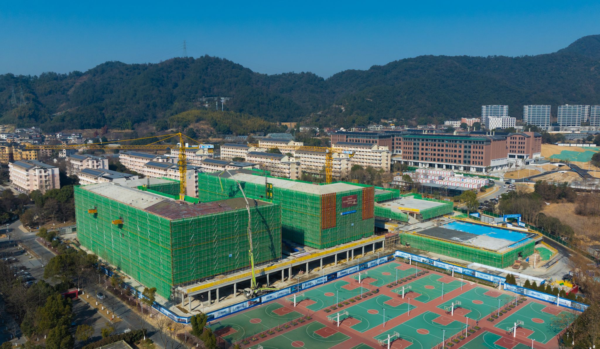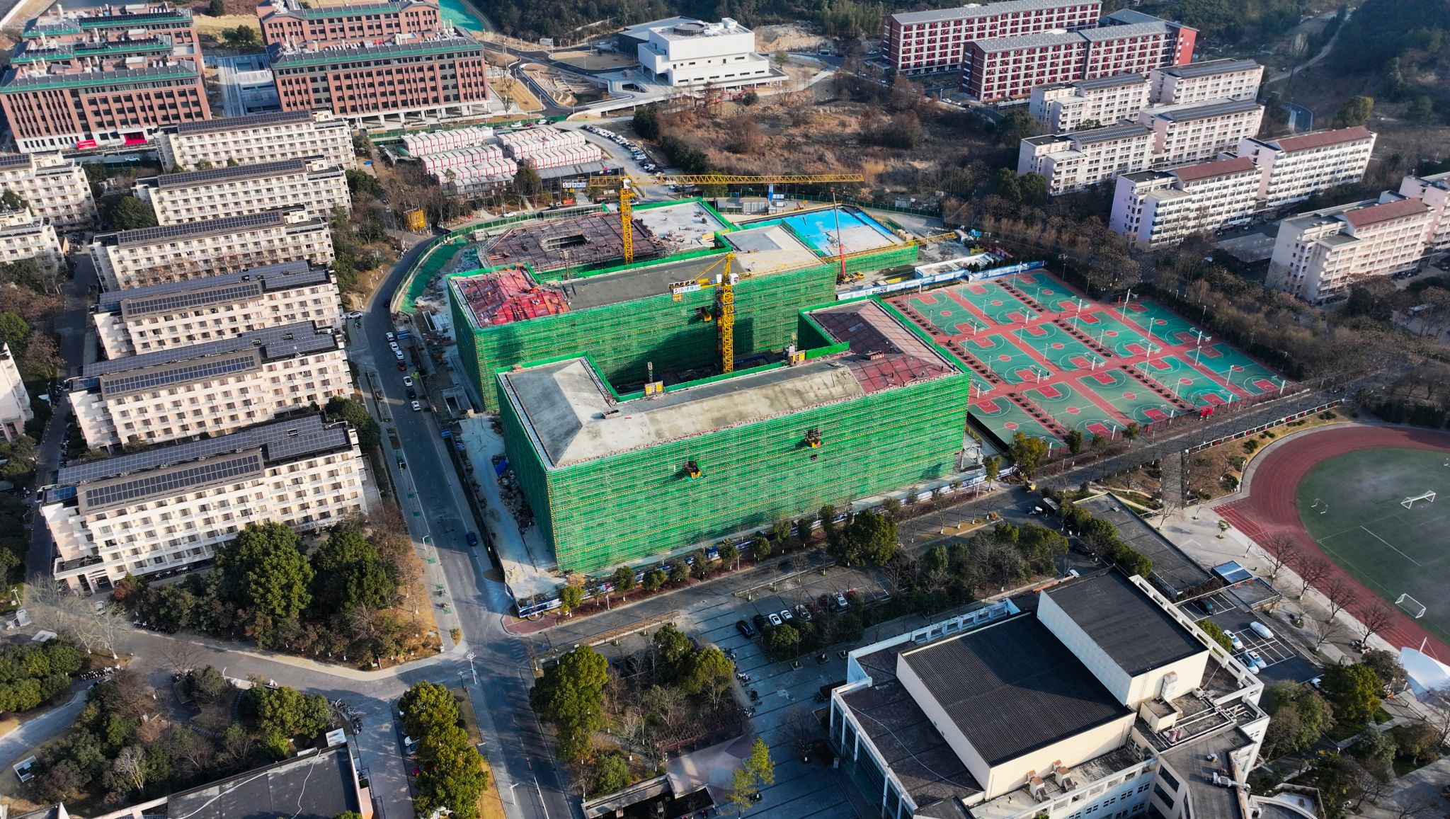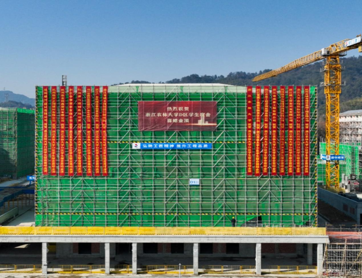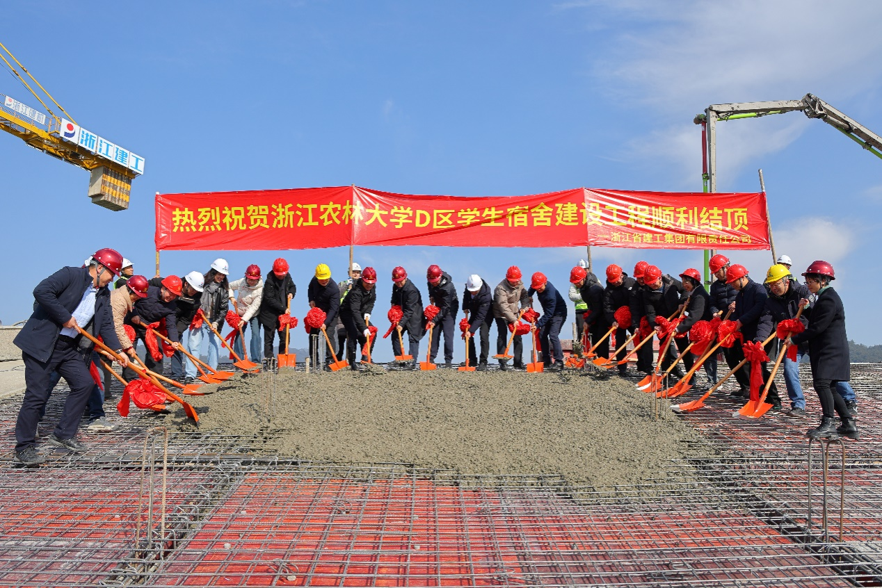 岁末深冬,阳光明媚。1月18日,beat365官方网站东湖校区D区学生宿舍建设工程施工现场热闹非凡,伴随着最后一方混凝土的浇筑到位,D区学生宿舍建设工程两幢宿舍楼主体结构顺利结顶。