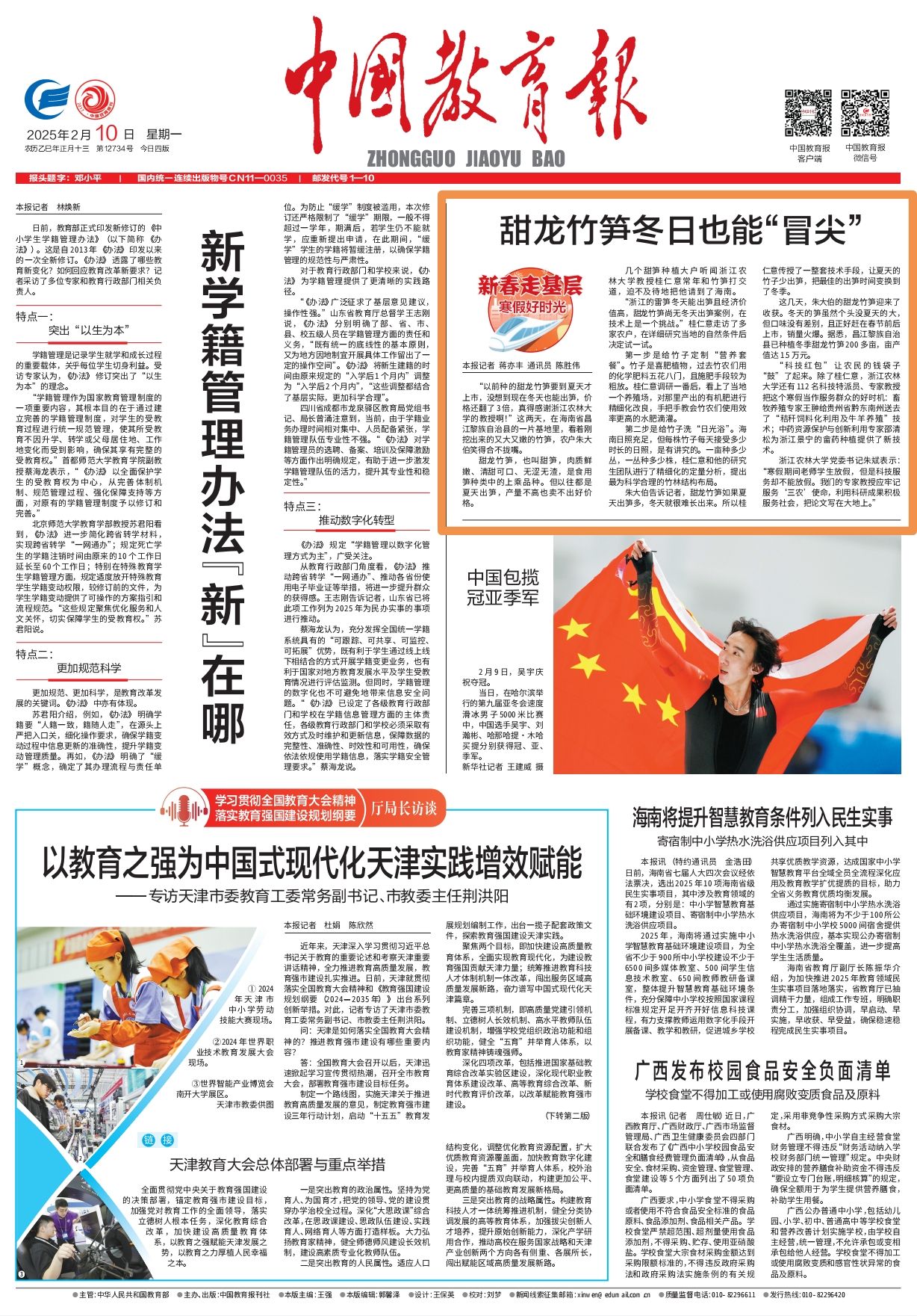 2月10日,《中国教育报》头版以《甜龙竹笋冬日也能“冒尖”》为题,报道beat365官网科技特派员深入海南省昌江黎族自治县,利用科研成果帮助农户提高竹笋产量,点赞科技特派员们利用寒假服务“三农”、服务社会,助力农民的钱袋子“鼓”起来。