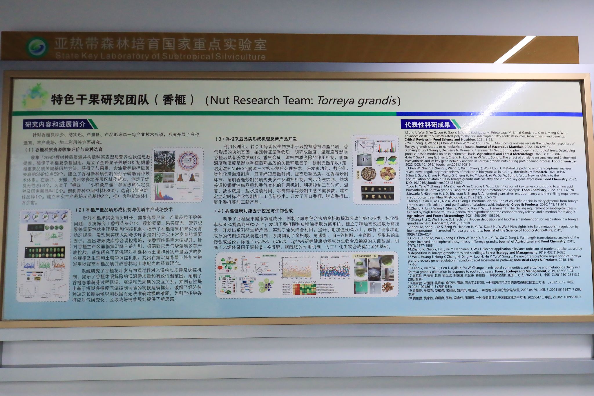 近5年,森林食物资源挖掘与利用全国重点实验室相关团队主持国家重点研发计划项目8项,国家自然科学基金重点项目12项;建有全国森林食物资源最丰富的种质库;在森林食物资源基因组学研究、低聚木糖功能添加剂创制等领域国际领先,重要产量品质性状遗传及环境互作机制解析、功能物质高通量挖掘处于国内前沿。累计获国家科技奖22项、省部级一等奖14项。