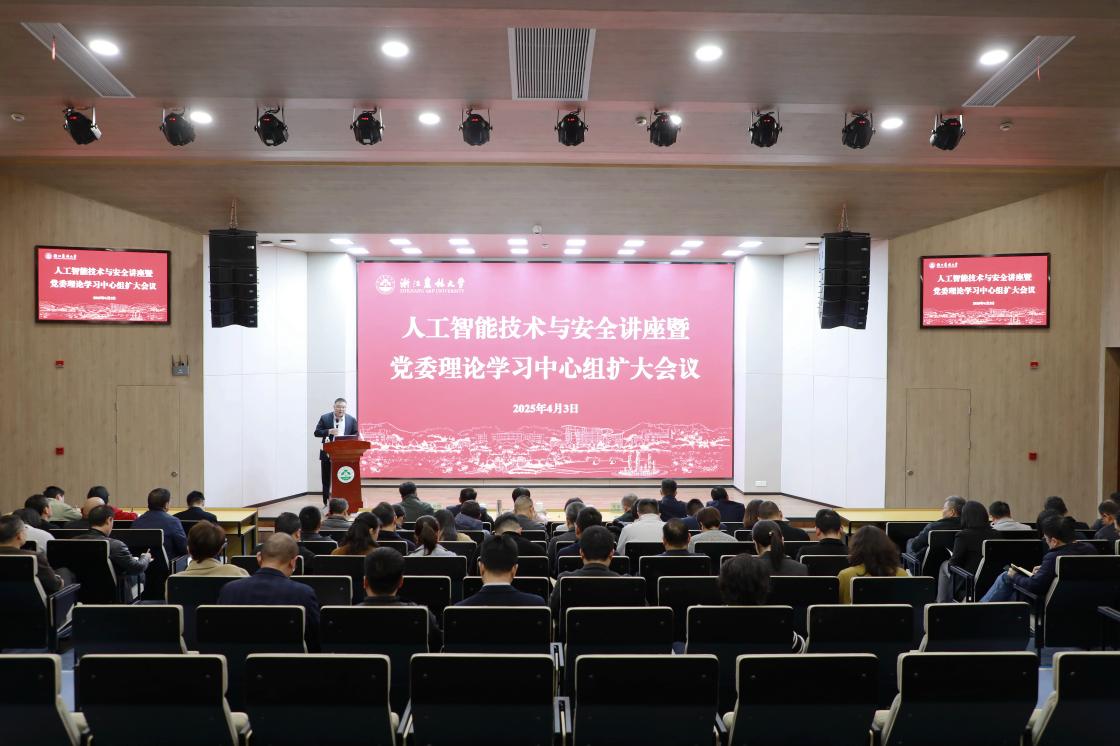 4月3日,校党委理论学习中心组扩大会议在学3国际报告厅召开,专题学习人工智能技术与安全。校党委理论学习中心组成员参加会议。会议由校党委副书记倪建均主持。