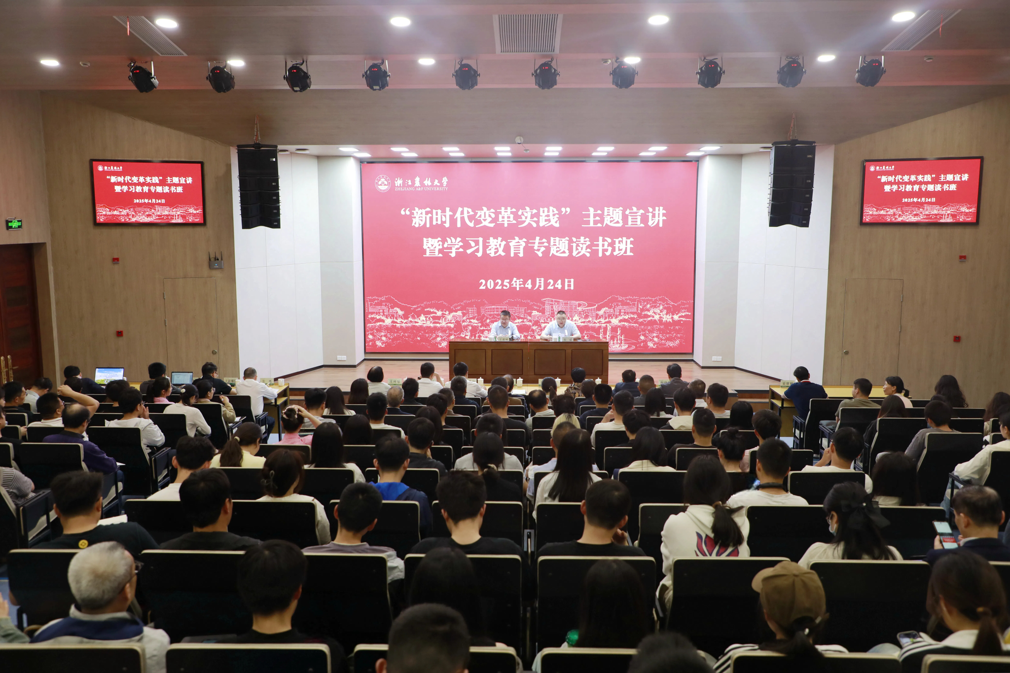 校党政班子成员,相关职能部门负责人,乡村振兴研究院、生态文明研究院两大省级智库研究团队成员,涉农专业师生代表共200余人参加宣讲会。