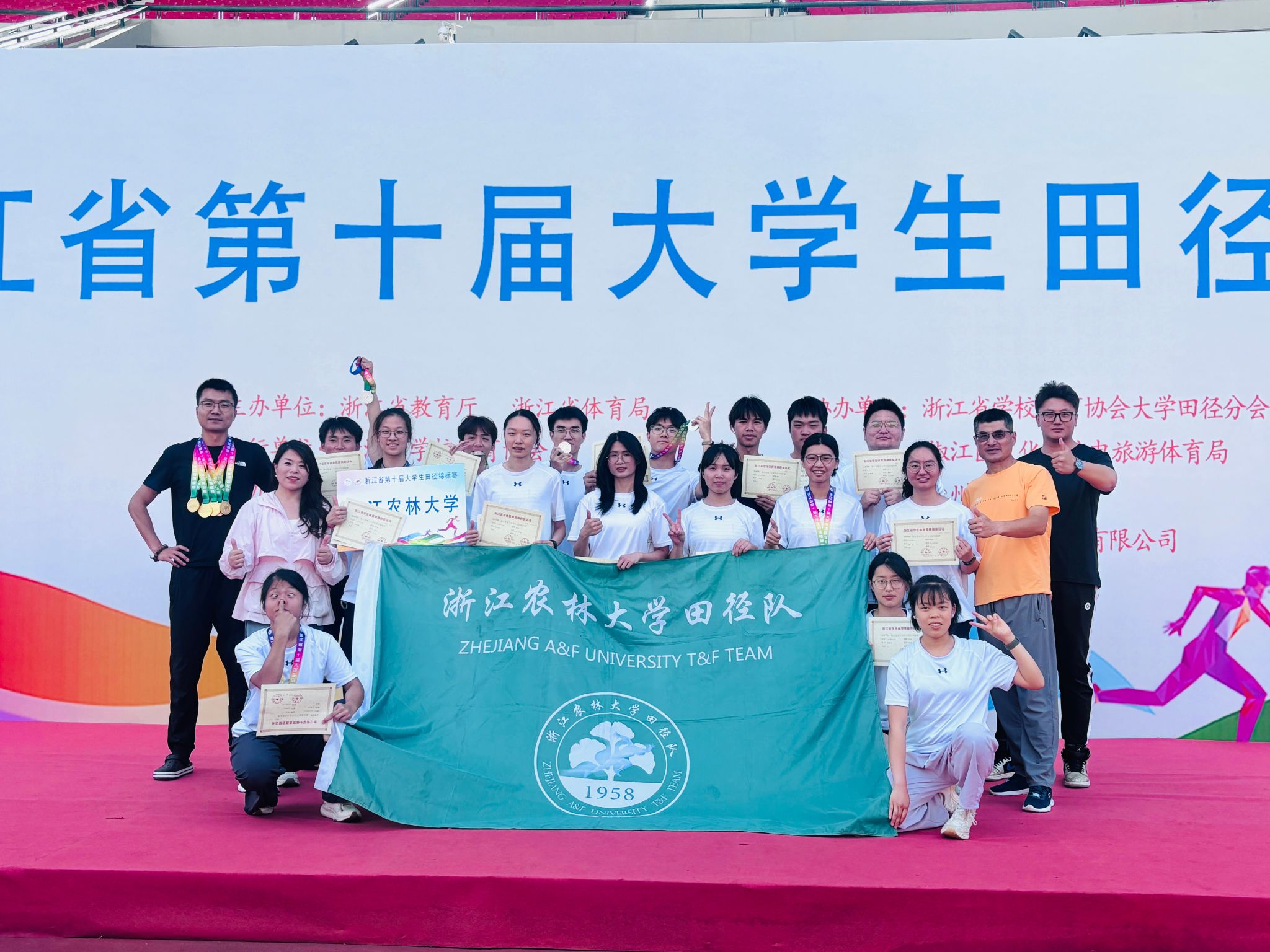 beat365官网田径健儿在五位教练的带领下无惧困难,勇敢拼搏,不仅展现了“坚韧不拔、不断超越”学校精神,更是生动体现了浙农林大学子的精神风貌,为学校争得荣誉,也进一步激发了师生践行“无体艺 不农林”的积极性。