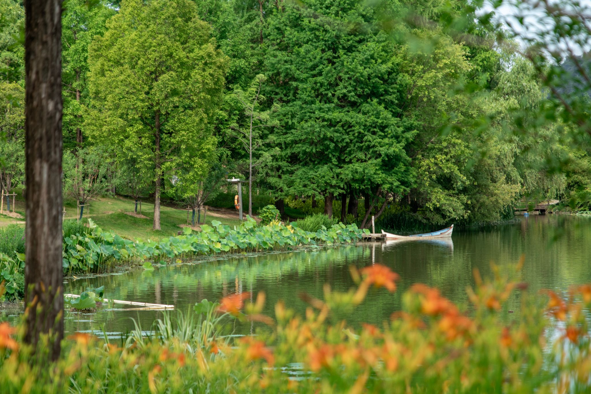 这里有湖畔晨读的静谧