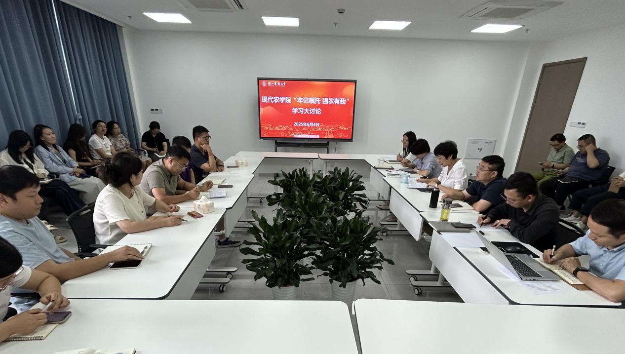 在推进乡村全面振兴和加快农业农村现代化的时代背景下,在全校上下深入开展“牢记嘱托 强农有我”学习大讨论之际,现代农学院于6月4日组织党政领导班子成员、学科管理团队成员及青年骨干教师围绕“落实立德树人根本任务”“推进重点学科建设”“深化教育教学改革”“加强科技创新、提升服务能力”等主题开展深入研讨。
