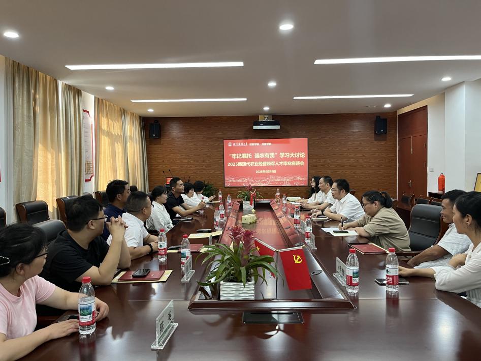 6月13日以来,继教学院、共富学院组织召开“牢记嘱托 强农有我”学习大讨论暨乡村振兴带头人培养改革系列座谈会。学院党政班子成员、各部门主管和农业领军人才班、“头雁”班、“乡村CEO”班等“新农人”校友代表们紧扣“乡村振兴,关键在人”的时代命题,聚焦“培养新型强农兴农人才”“全面助力乡村振兴”等主题内容,通过榜样引领、思想碰撞,共话乡村人才终身教育培养改革方向,共谋学院“十五五”规划要点。
