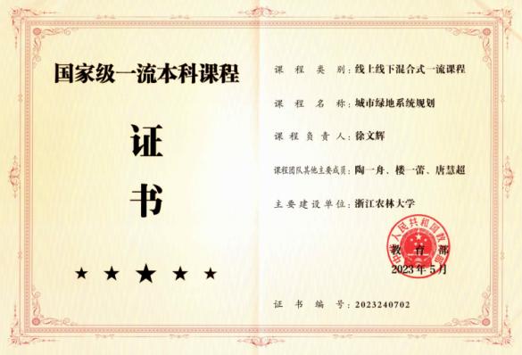 学院扎实落实立德树人根本任务,深入推进课程思政建设,育人成效显著。近五年,《园林规划设计(公园设计)》等3门课程列入国家一流课程,《园林树木学》等18门课程列入省级一流课程,获批省级一流教材8部,省级教改项目9项;教师获全国高校教师教学创新大赛(课程思政组)二等奖1项、省高校教师教学创新大赛特等奖、一等奖4项。