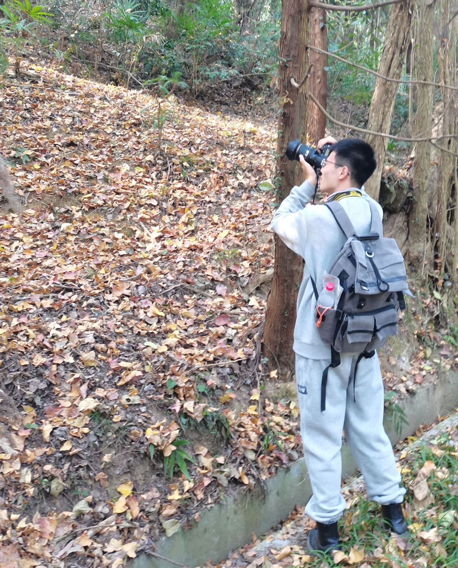他穿梭在碳汇楼后的樱花小径,流连于B区研究生宿舍旧址的覆盆子丛中,仰望从活动中心楼顶倾泻而下的爬山虎绿瀑。“日子久了,我清楚地知道什么季节、什么天气去哪个点位进行拍摄效果最好。”他对校园愈发熟悉,对摄影也更加得心应手。