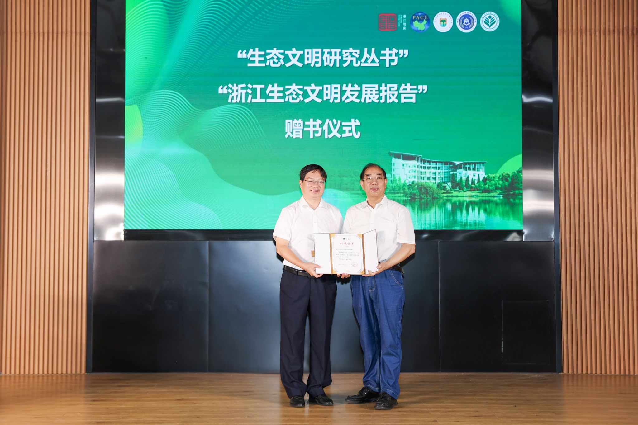 会上举行了“生态文明研究丛书”“浙江生态文明发展报告赠书仪式,展示了近年来浙江生态文明建设的研究成果和理论沉淀,标志着“两山”理念学术体系不断走深走实,持续服务国家战略和全球绿色发展。