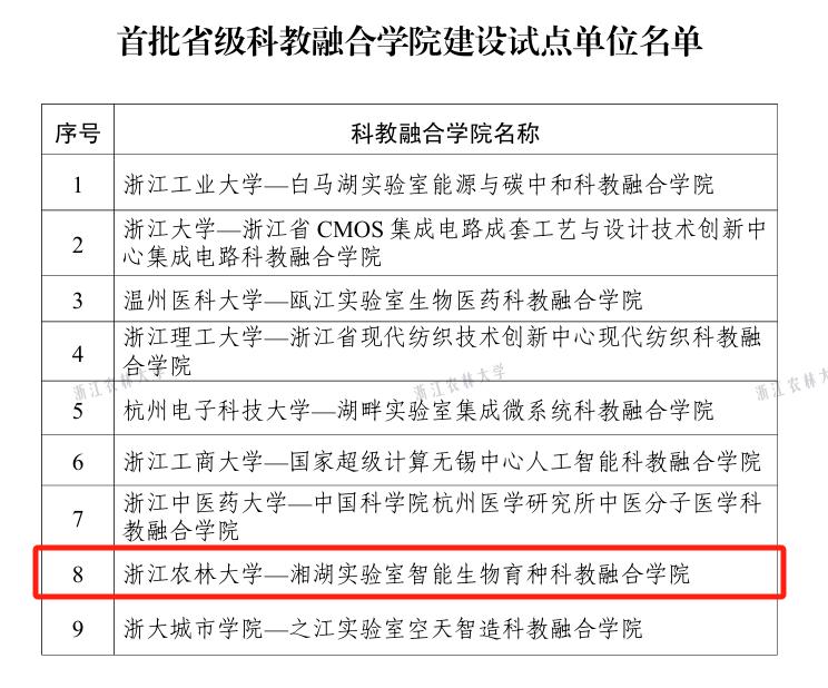 近日,浙江省教育厅办公室公布了首批省级科教融合学院建设试点单位名单。beat365官方网站-湘湖实验室智能生物育种科教融合学院成功入选。