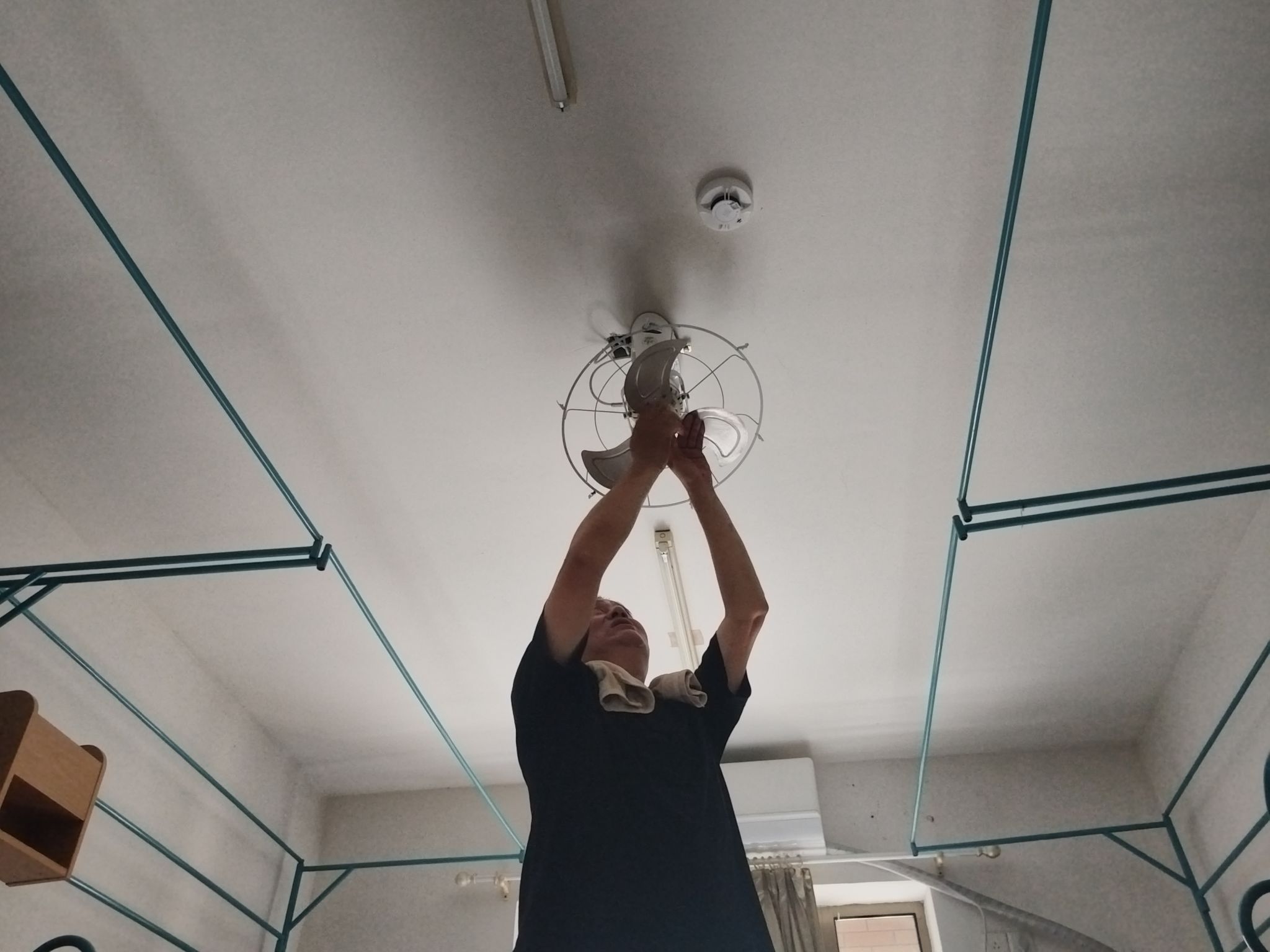 暑期是维修黄金时间。维修师傅们在热浪中穿梭于校园的每一个角落、每一间寝室,清洗风扇、维修门窗、修补台盆、检修床铺……