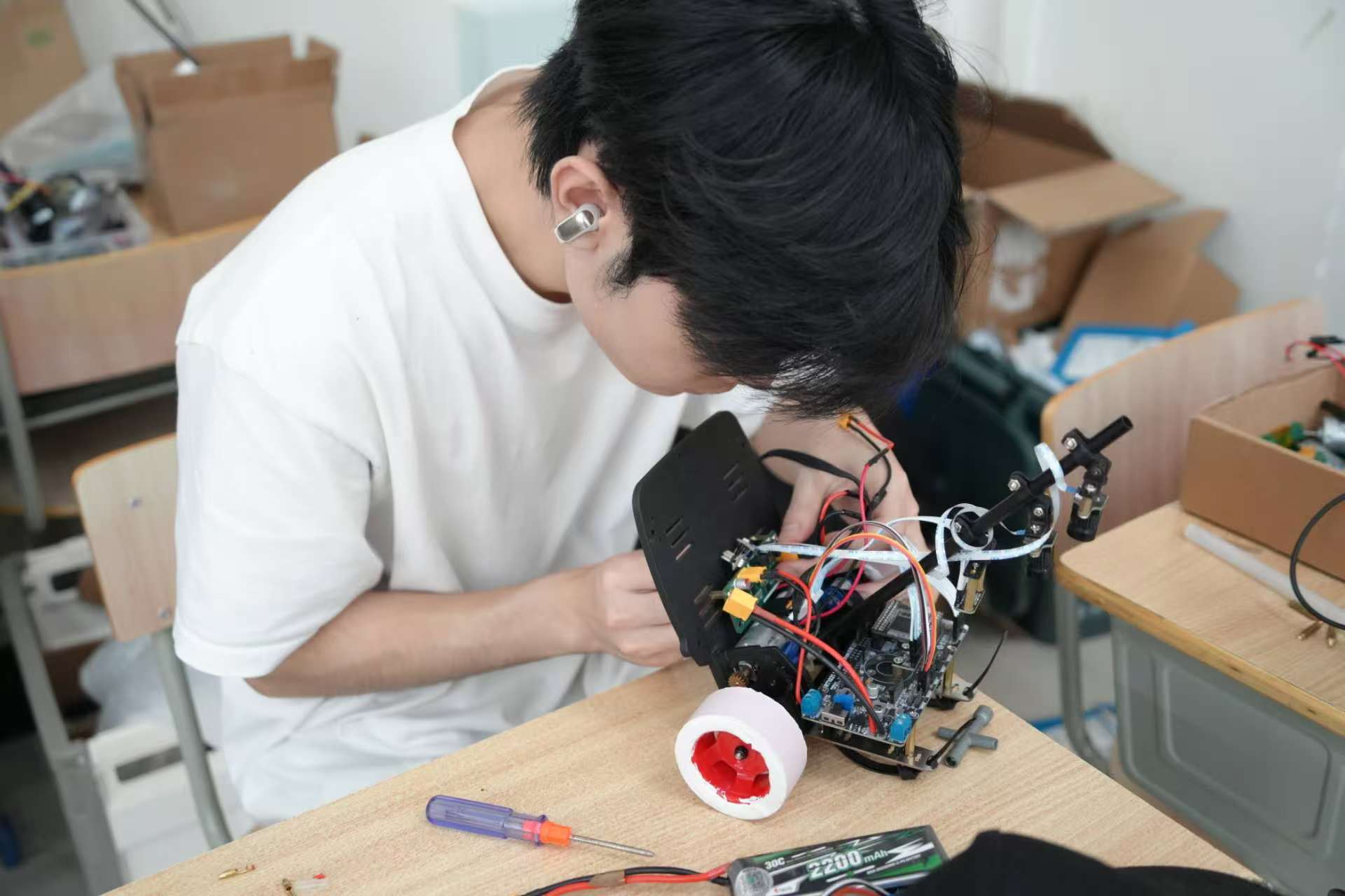 电子信息工程专业232班的孙伟策,在智能汽车竞赛中体会到心态的重要性。竞赛过程可谓一波三折,硬件损坏、代码不适配等问题屡见不鲜,甚至出现过“负进步”——一周调试的代码效果反而不如从前。但他学会了给自己“松绑”,放慢节奏,留出放松的时间,反而能以更饱满的状态投入到实验中。这份从容,让他在一次次调试中稳步前进。