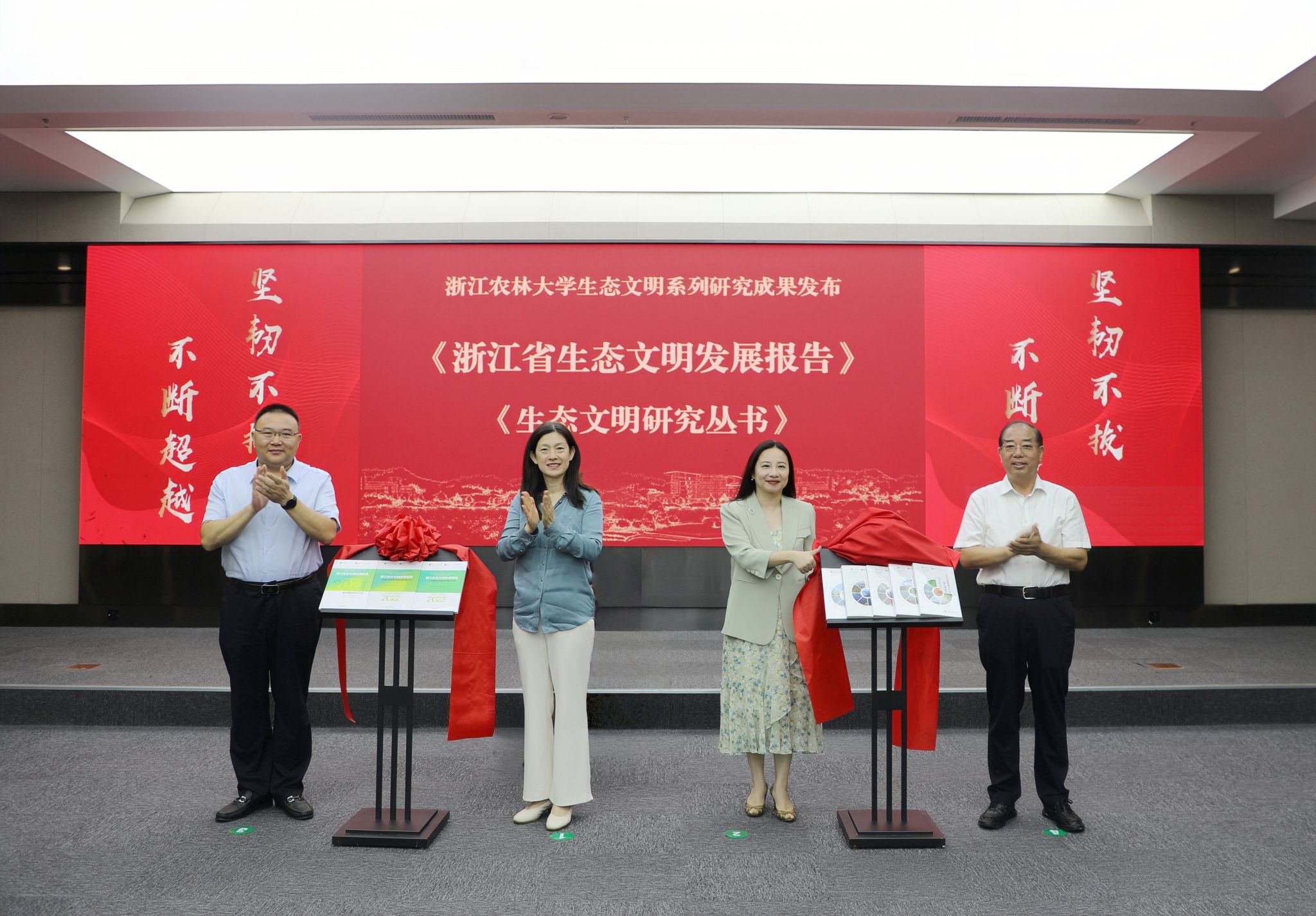 会上,发布了学校生态文明研究系列成果:《浙江省生态文明发展报告(2021/2022/2023)》《生态文明研究丛书》。