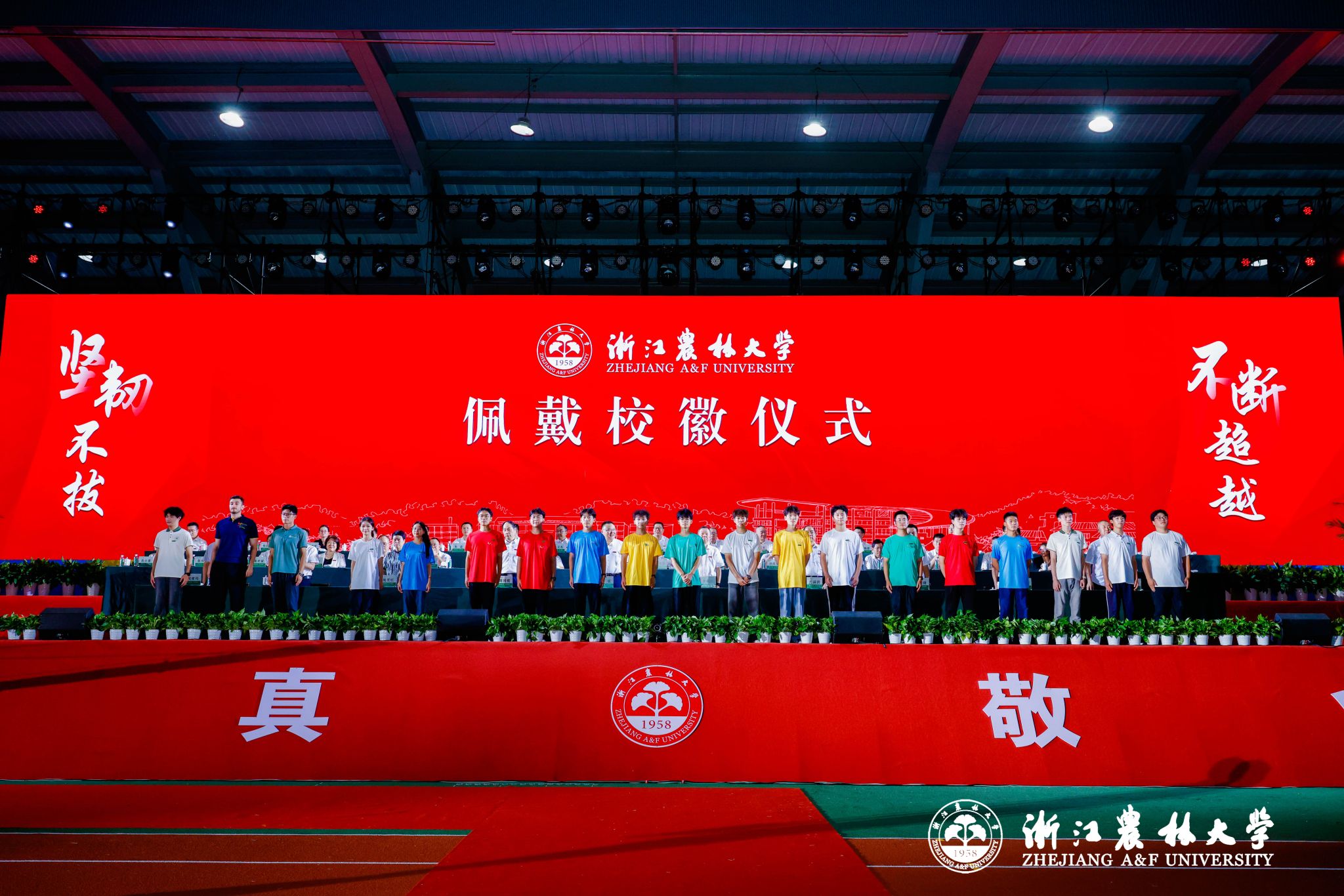 典礼上,举行了校徽佩戴仪式。校领导为新生代表佩戴校徽,全体新生共同佩戴校徽。校徽是学校的象征与标识,更是全体学生与教职工的荣耀与自豪。戴上校徽,新生们就永远烙上了浙农林大印记,从此与学校同呼吸、共命运。