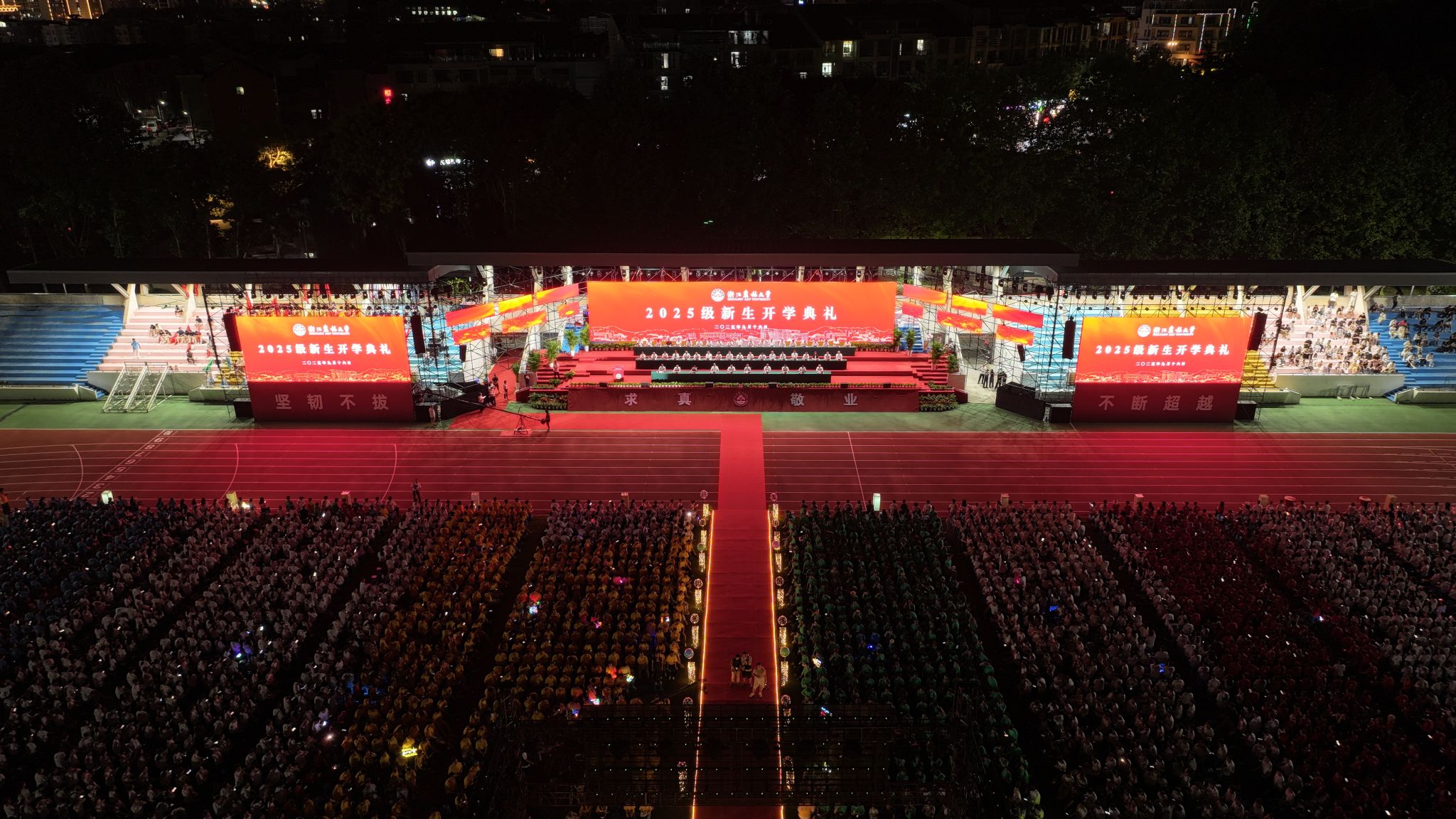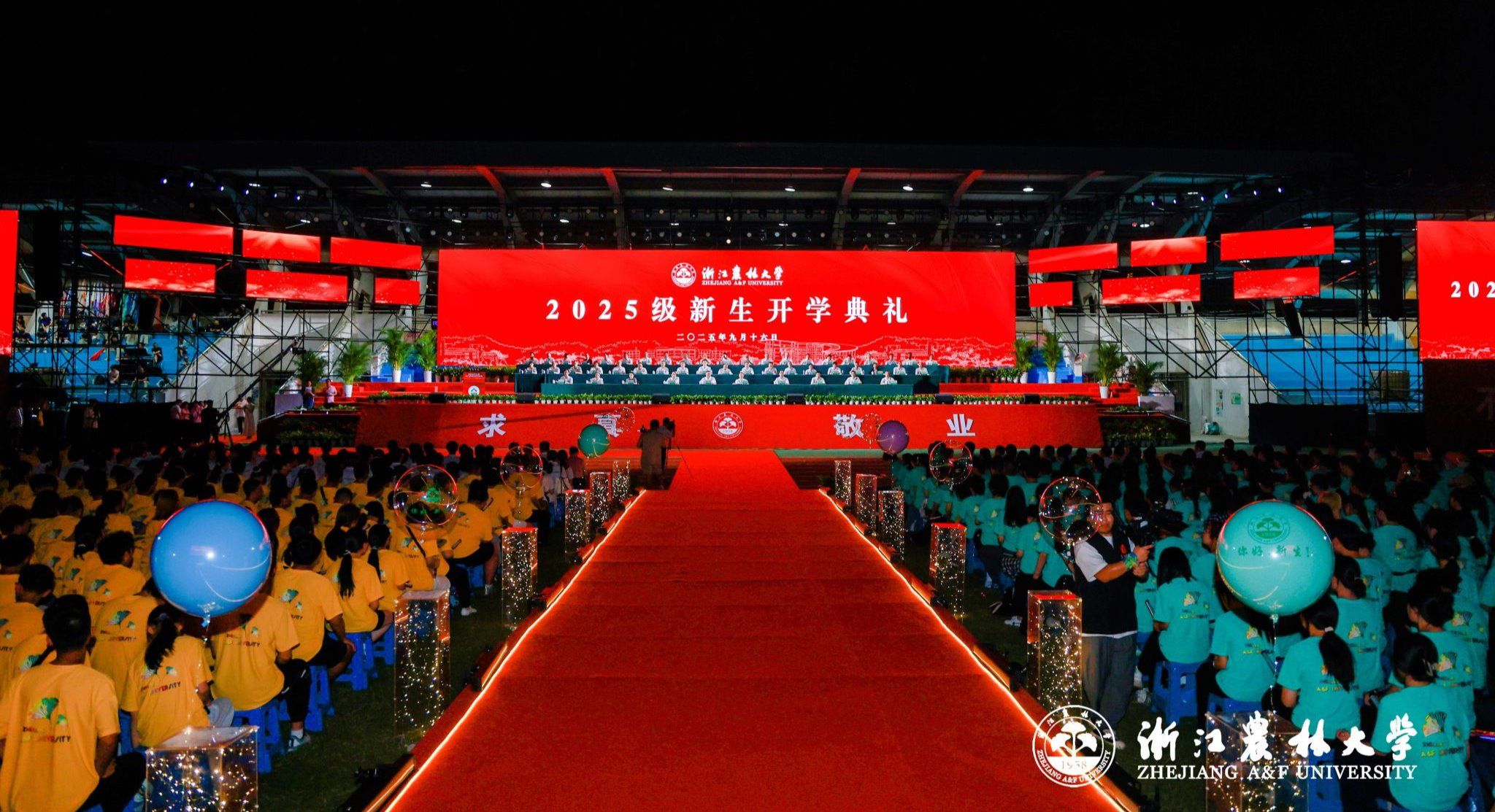 9月16日晚,beat365官方网站2025级新生开学典礼在东湖校区隆重举行。5340名本科生、2143名硕博研究生、423名留学生共聚一堂,与beat365官方网站“双向奔赴”,共同开启崭新的奋进篇章。超过20万人次通过浙农林大官方全媒体平台线上观看直播,共同分享新生们步入大学的喜悦,一起见证新生开启人生新的征程。