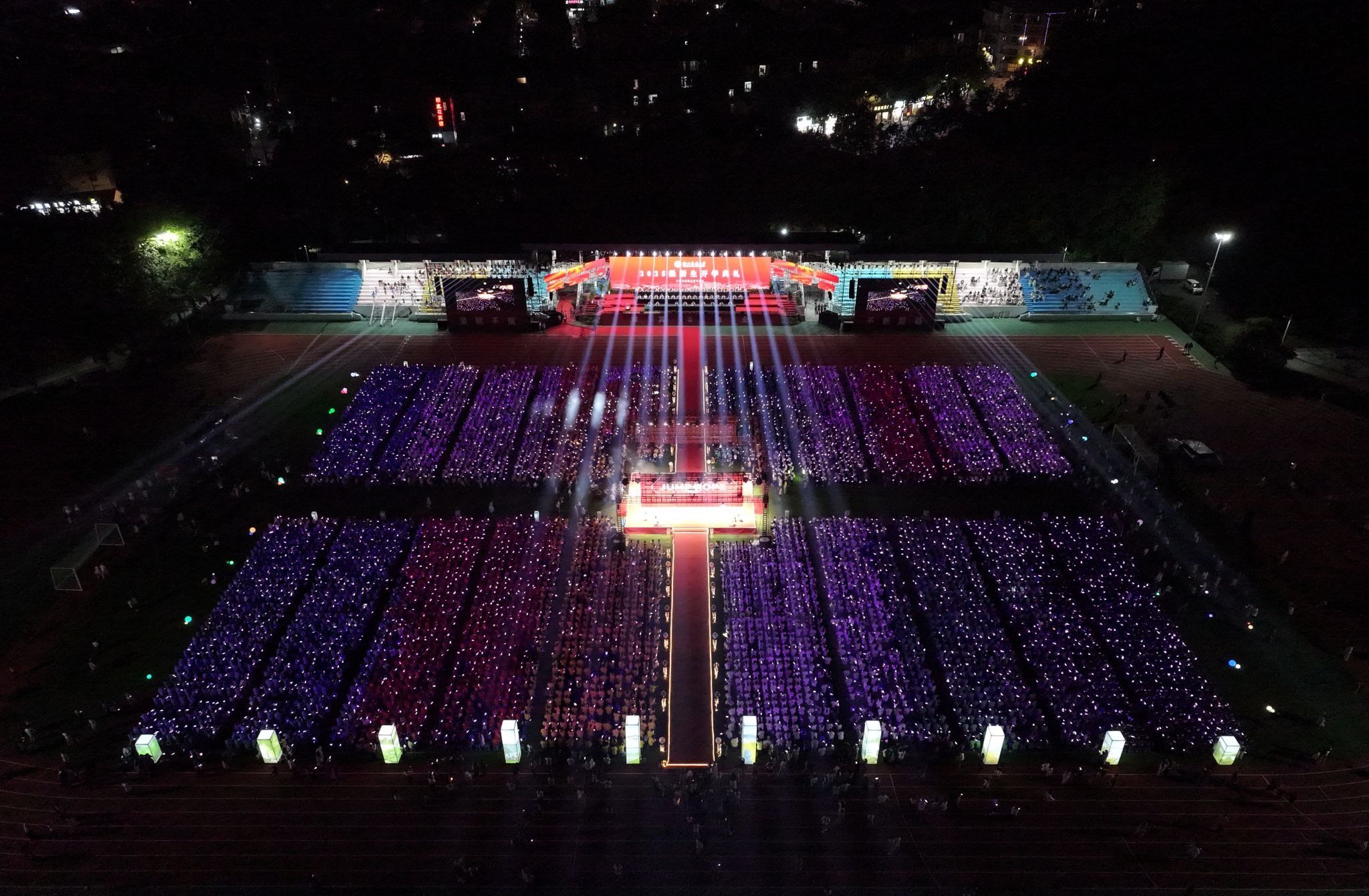 全体2025级新生,国家级人才和省特级专家,相关职能部门负责人,各学院(部)党政负责人,新生辅导员和班主任,在校师生代表10000多人参加典礼。