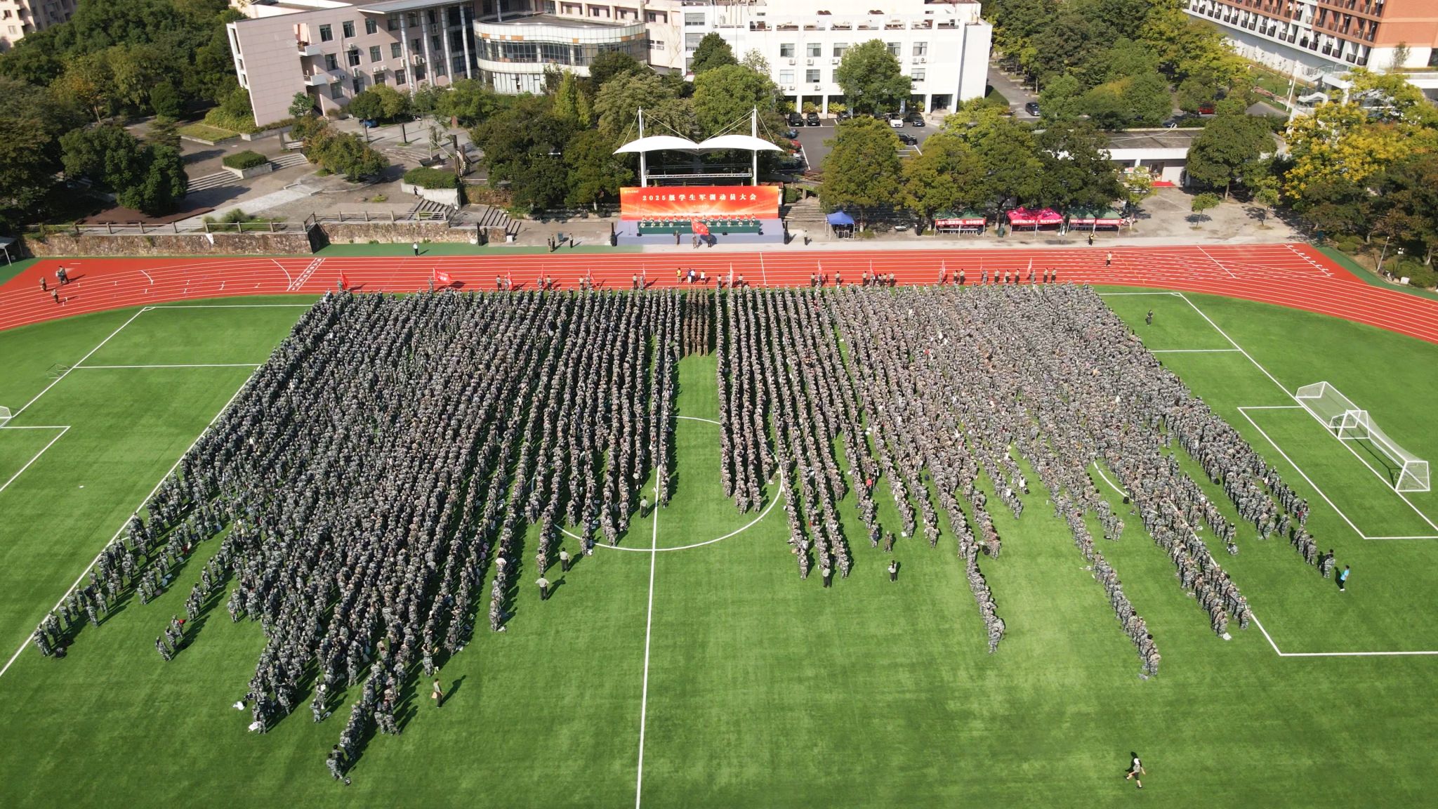 据悉,本次军训将持续10天,2025级新生参训5080人,其中男生2454人,女生2626人。设1个军训师,下辖12个营,73个排。军训期间将开展队列、内务、军事理论、军事技能等多项训练内容,全面提升学生的国防意识和综合素质。