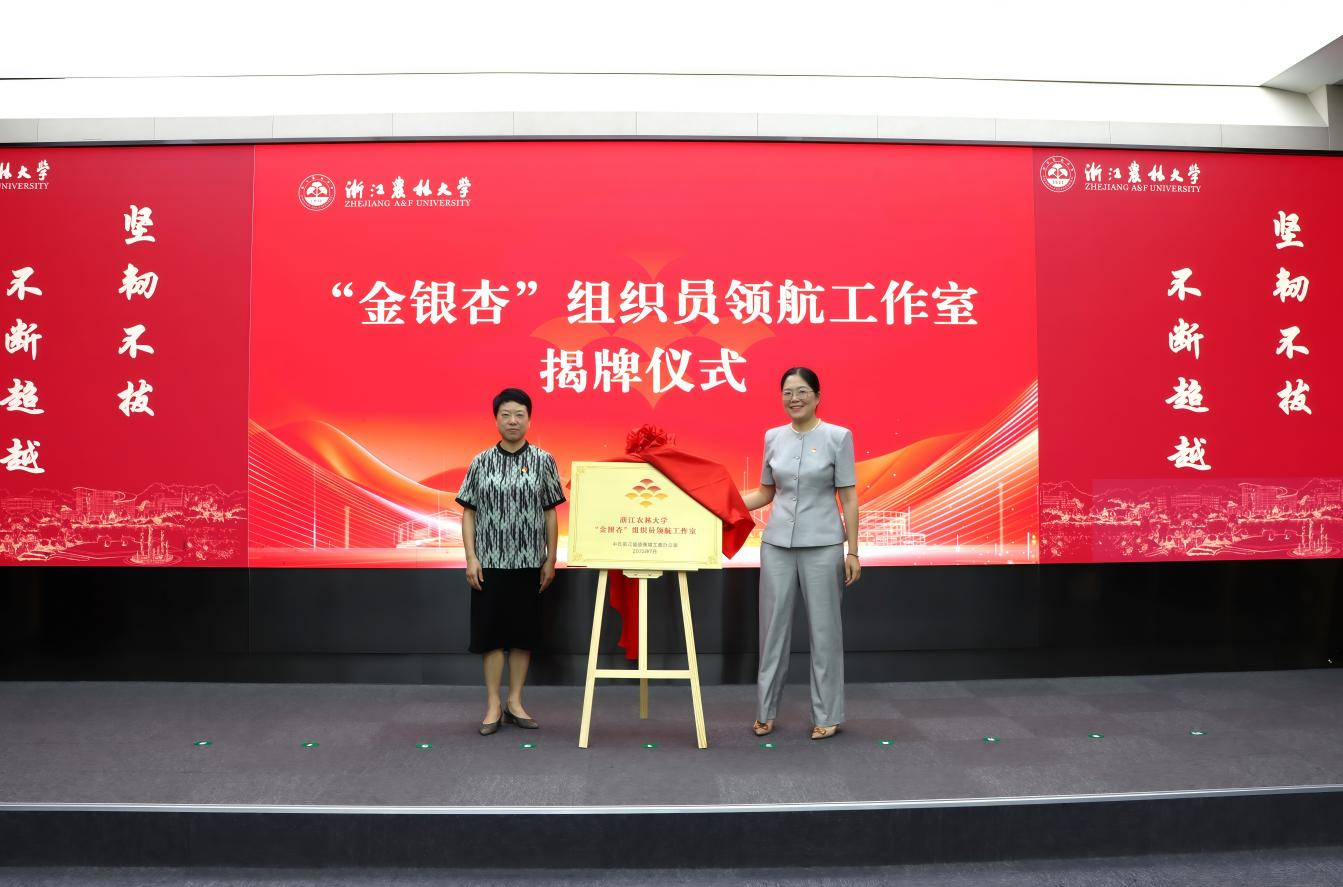 施美红与工作室导师代表董雨琴共同为“金银杏”组织员领航工作室揭牌。