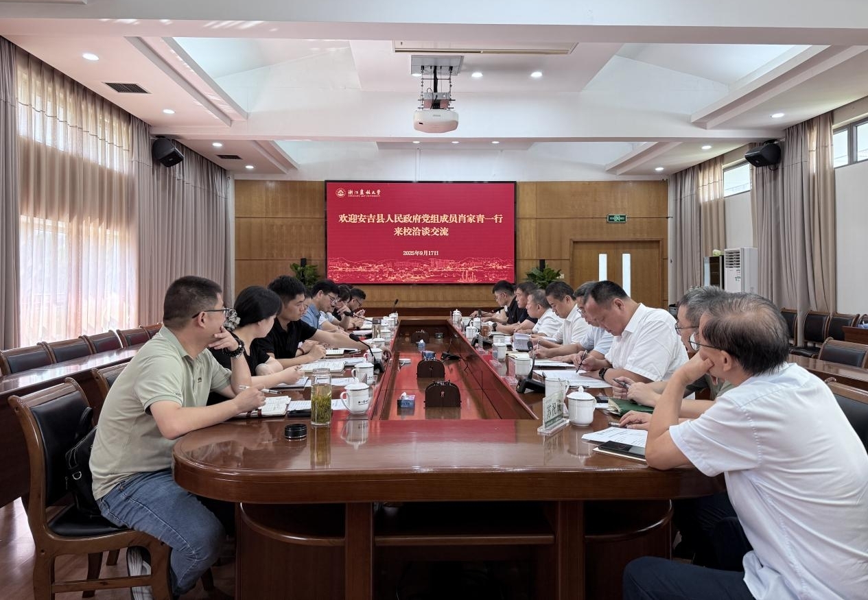 肖家青对学校长期以来给予安吉的支持表示感谢。他希望能深度依托学校的资源优势,在科技创新、成果转化、人才培养及产业升级等方面实现全方位、多层次的合作共赢,助力安吉县生态农林业实现跨越式高质量发展。