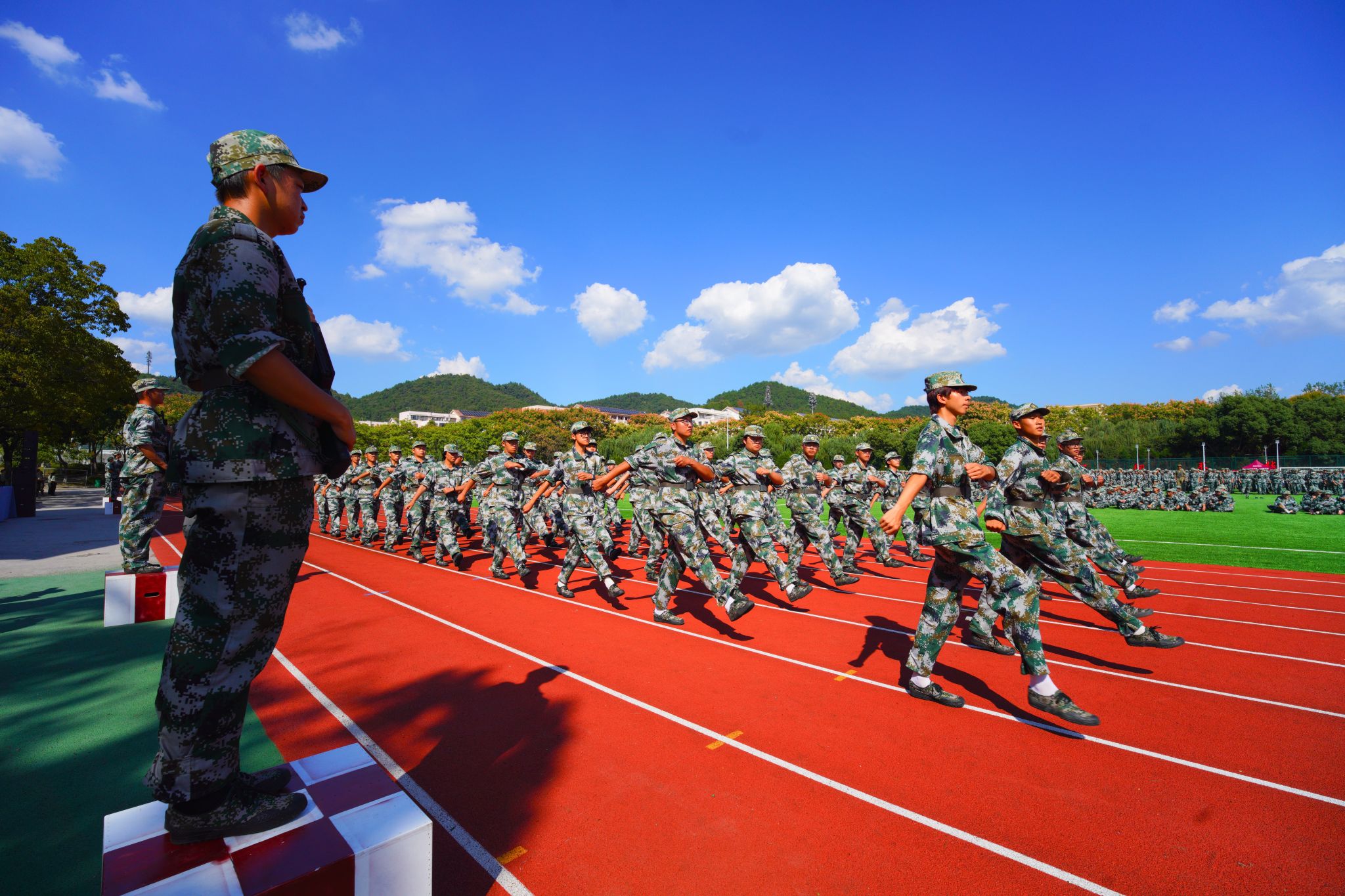 本次军训设1个军训师,下辖12个营,73个排,共有5080名学生参训。