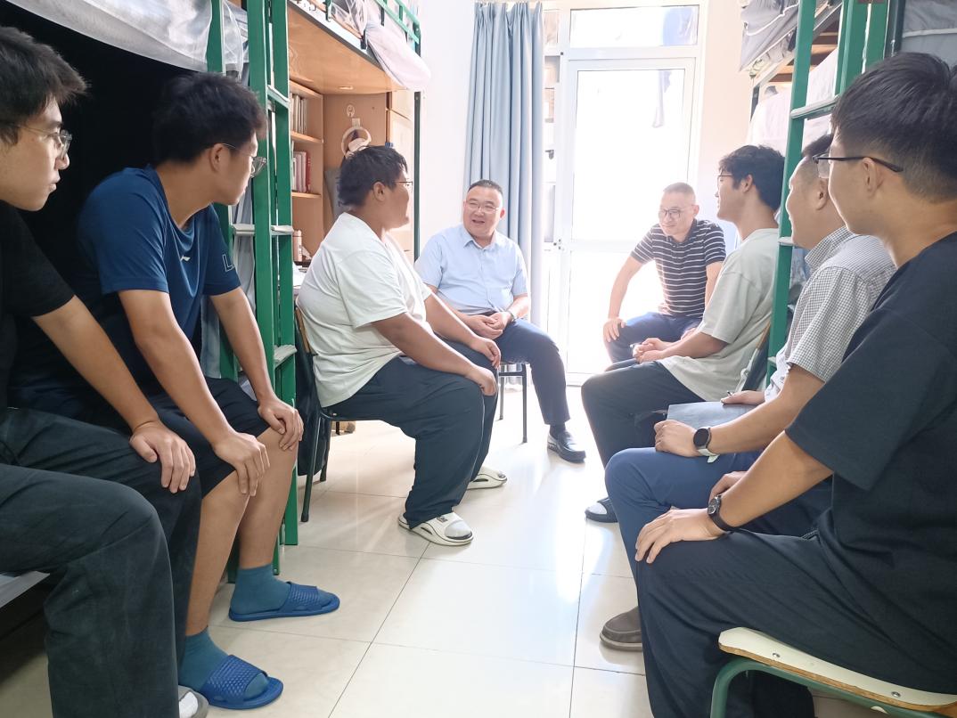 走访过程中,朱斌与同学们亲切交流,仔细询问大家的兴趣爱好、入学以来的适应情况以及未来的学业规划,并围绕大学生活、个人发展等方面给予悉心指导。他鼓励同学们在扎实完成学业的同时,要积极参与校园文化活动,全面提升综合素质,实现德智体美劳全面发展。