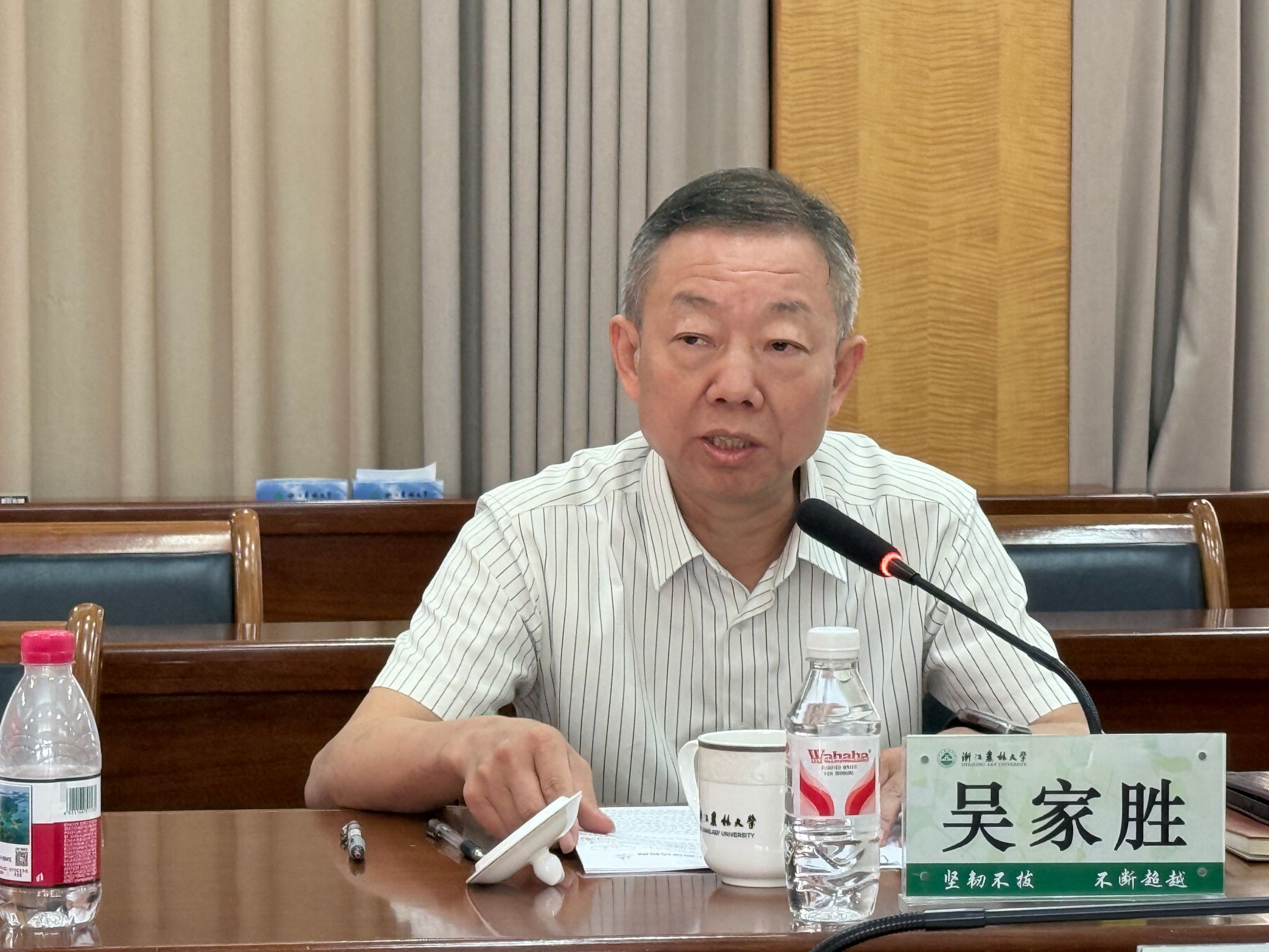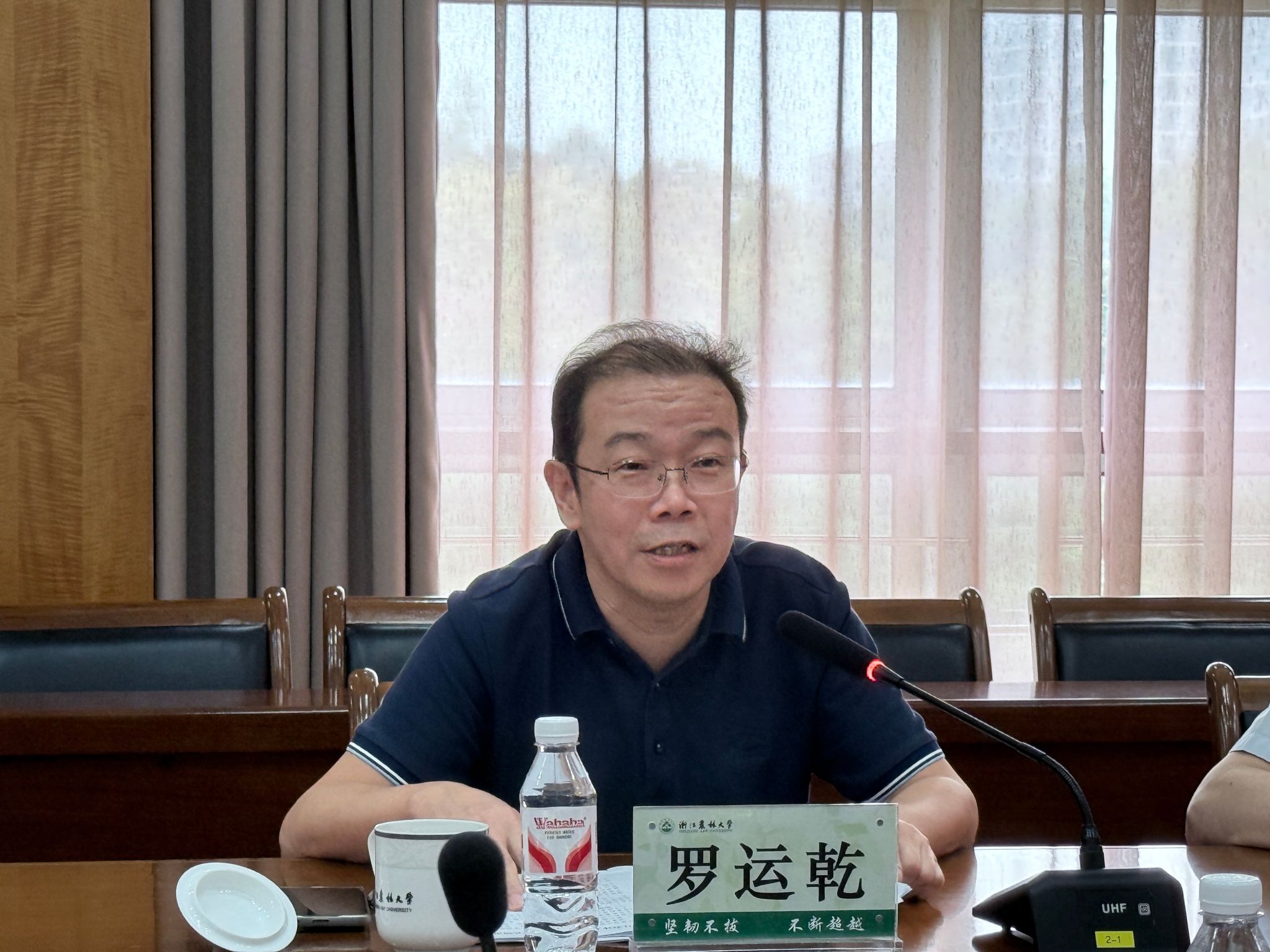 吴家胜对罗运乾一行的到来表示欢迎。他指出,学校与遂昌县有着天然的合作基础,遂昌县是学校打造“全校服务全域”模式的示范点。工作开展以来,学校举全校之力为遂昌县提供全方位支撑,建立完善各项工作机制,高效落实服务任务,合作成效显著,显示度高,形成了良好的社会影响。他希望,未来双方合作要聚焦农林特色产业,通过研究院做精做专项目合作,推动县校合作向更深层次、更精准化方向发展,探索更多领域合作的可行性,同时要优化资源配置,构建互利共赢长效机制。