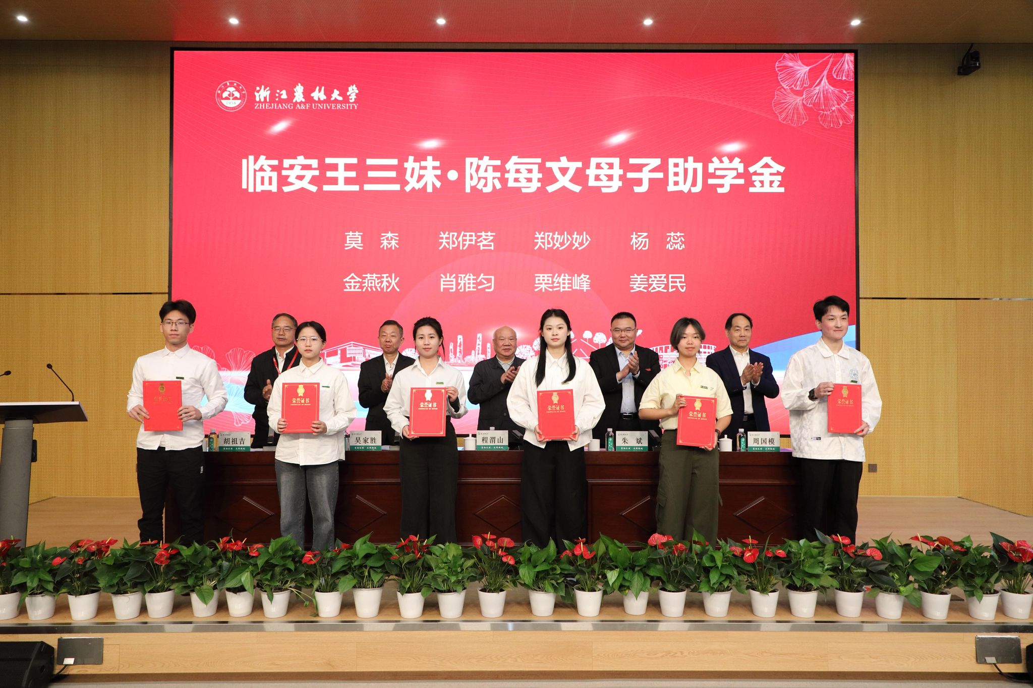 大会举行了奖助学金颁奖仪式。与会领导为“临安王三妹·陈每文母子助学金”受助学生颁奖;捐赠人亓伟明为“亓汉三英才奖学金”获奖学生颁奖;浙江泰隆慈善基金会项目总监蔡函孜为“泰隆之星”奖学金获奖学生颁奖。